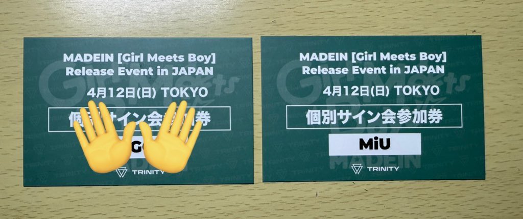 Kazuk @kneno_zi · 17h MADEIN Girl Meets Boy 東京 4/12 譲】 個別サイン:ミユ 求】個別サイン:セリナ >買取 交換や買取可能な方是非お願いします🙇♂️🙇♂️ #MADEIN #MADEIN交換 #MADEIN買取TR 250