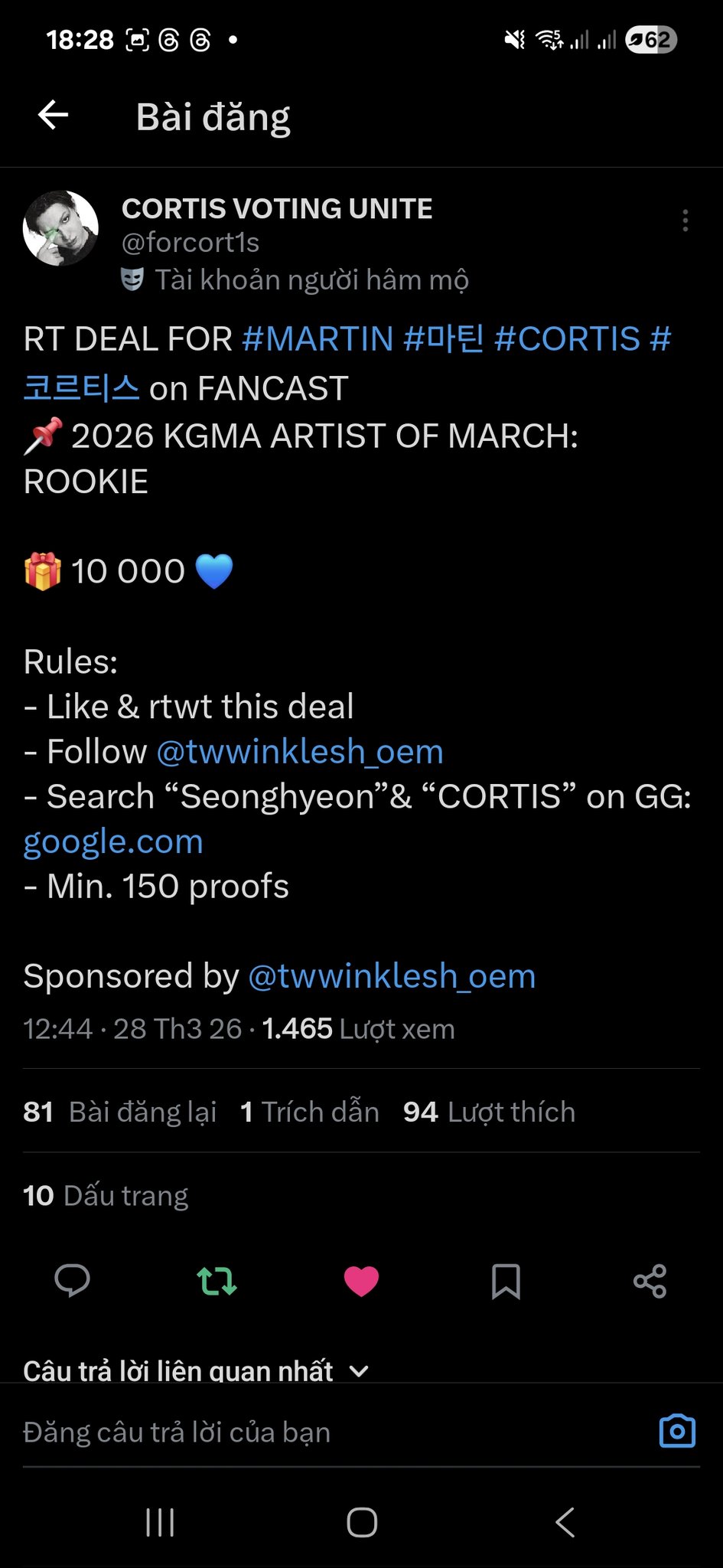 htpksvjav @tmNgoc_ · 50m Replying to @forcort1s @forcort1s @twwinklesh_oem FOR #MARTIN #마틴 #CORTIS #코르티스 57