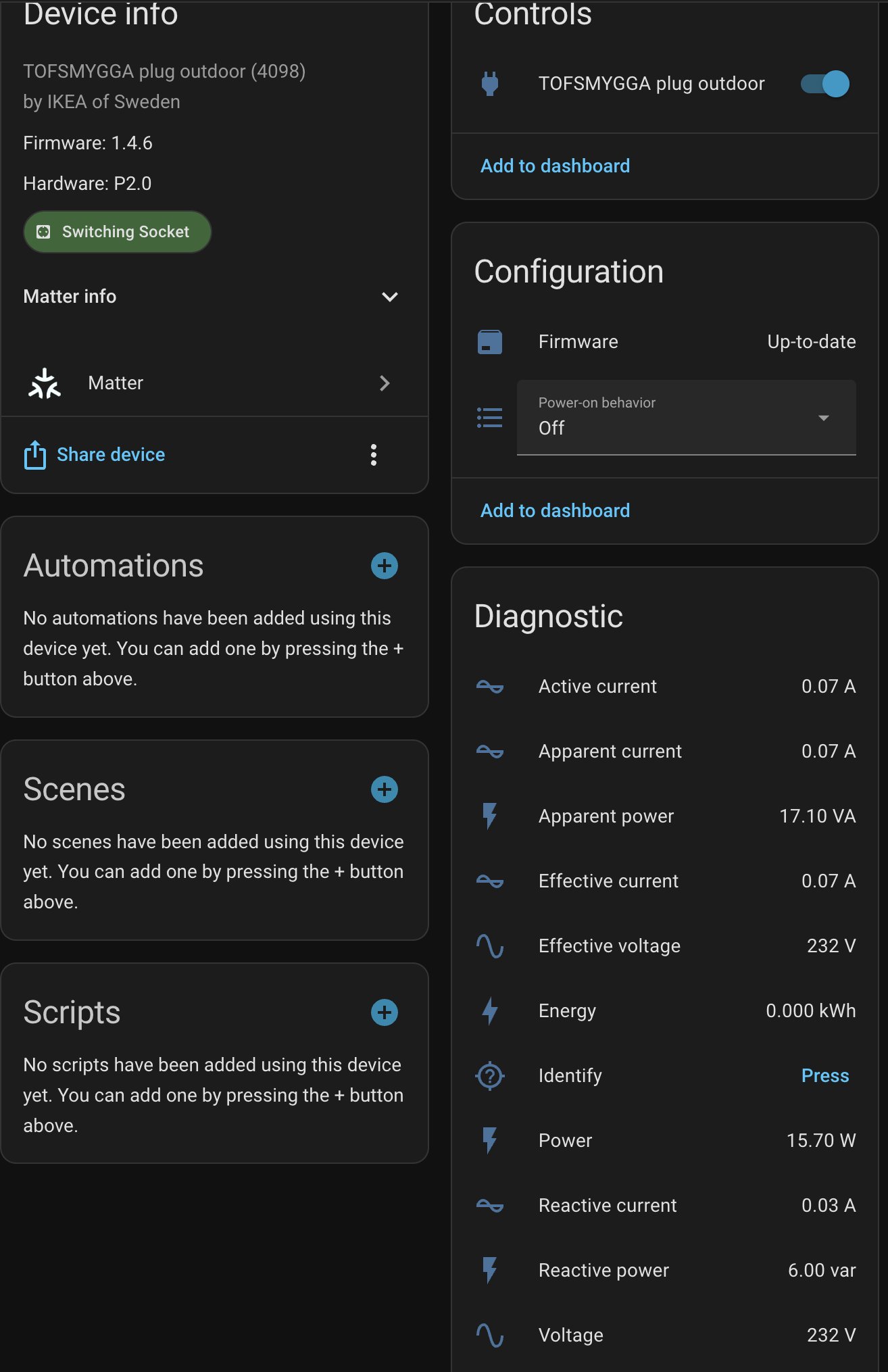 The new @IKEA #TOFSMYGGA and #GRILLPLATS #matter over #thread plugs are really nice and cheap. Even with apparent & reactive measurements!