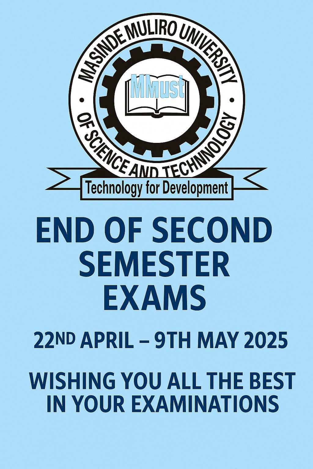 Masinde Muliro University of Science and Technology wishes all students the very best as they begin their End of Second Semester Exams