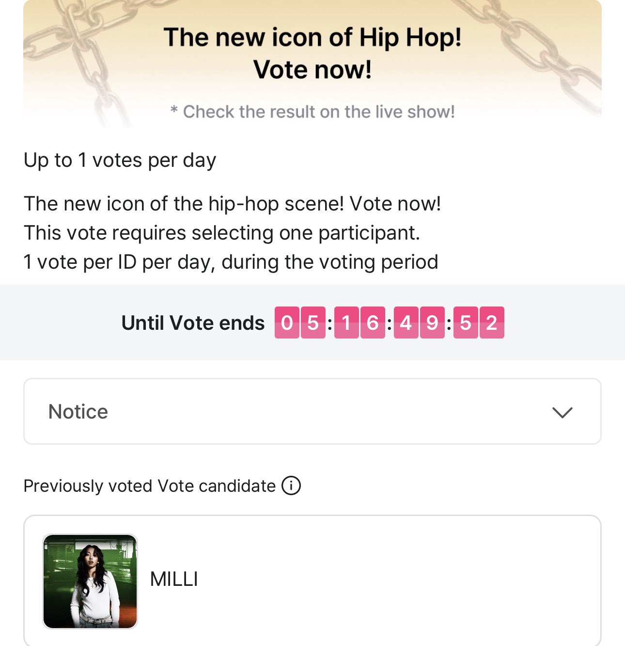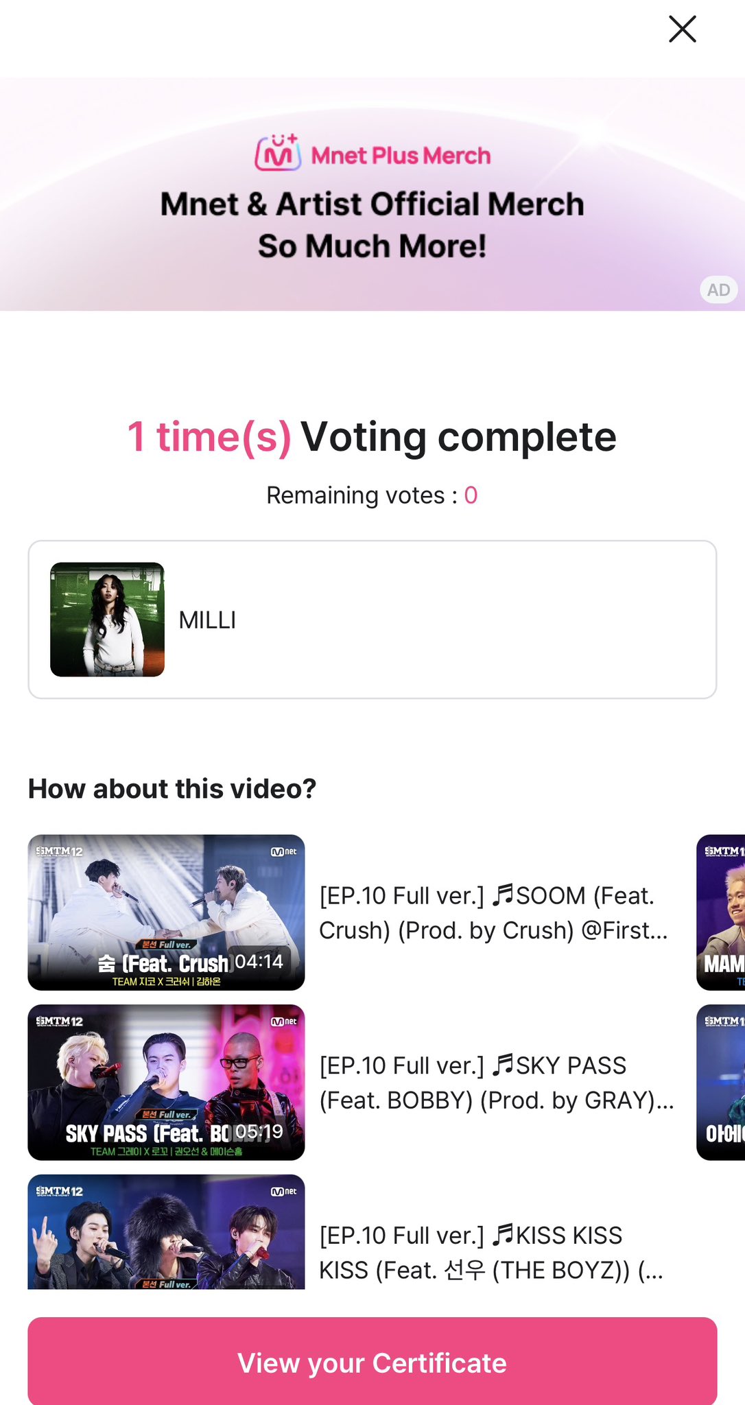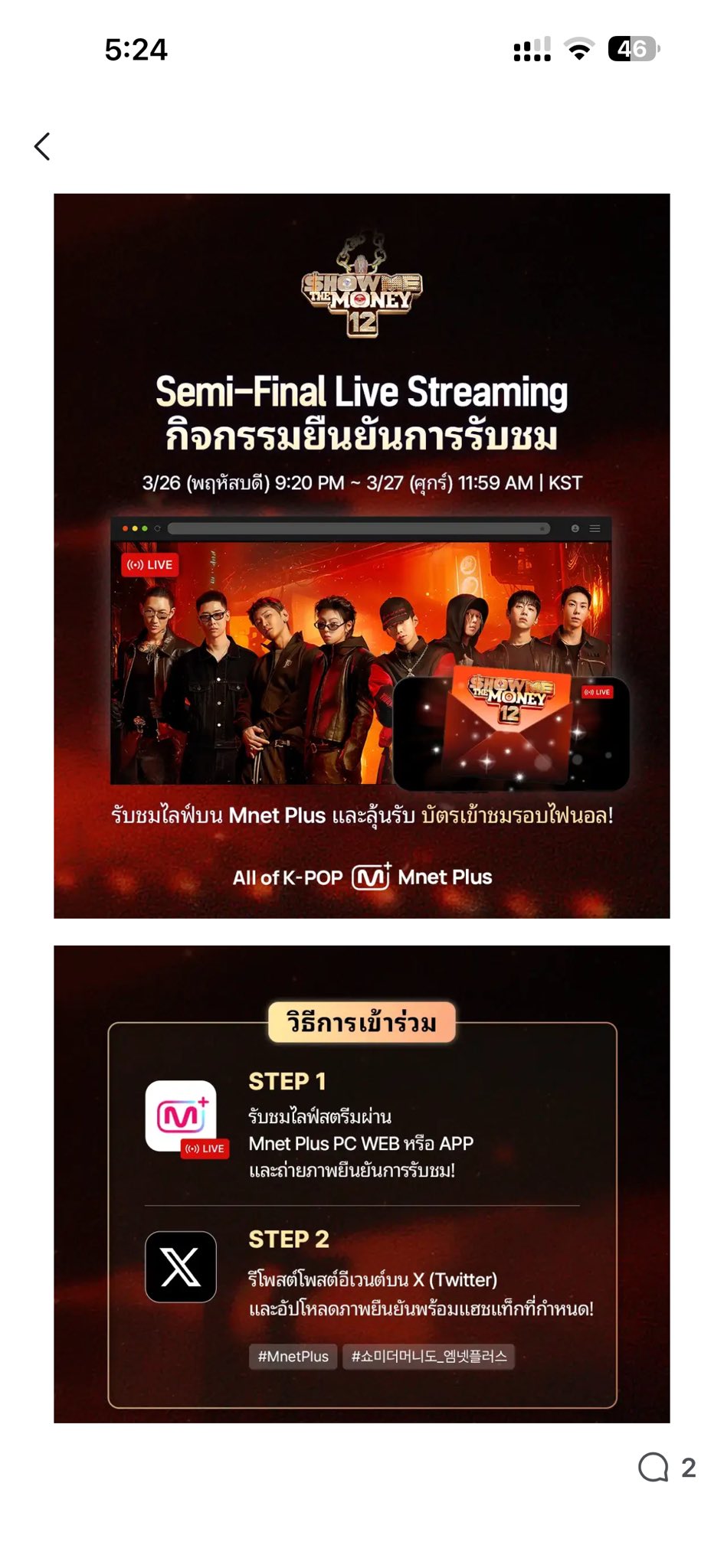 EVE_ZHAN_YIBO @yakumi2561 · 1d Vote for #Milli ลุ้นบัตรเข้าชมรอบไฟนอล ที่เกาหลี 10 คน #MnetPlus #Mnet #showmethemoney 154