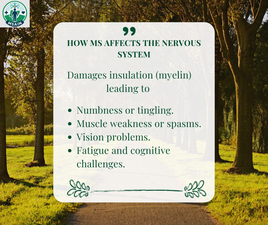 In MS → the immune system attacks the myelin (insulation). Signals slow/stop.