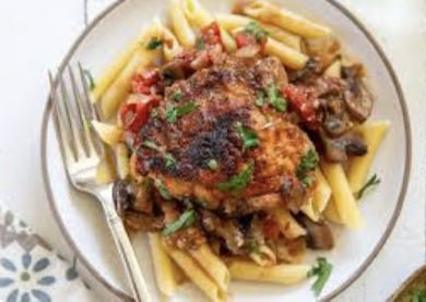 ➡️ le plat original est bien à base de poulet, mijoté avec tomate, ail et vin blanc.