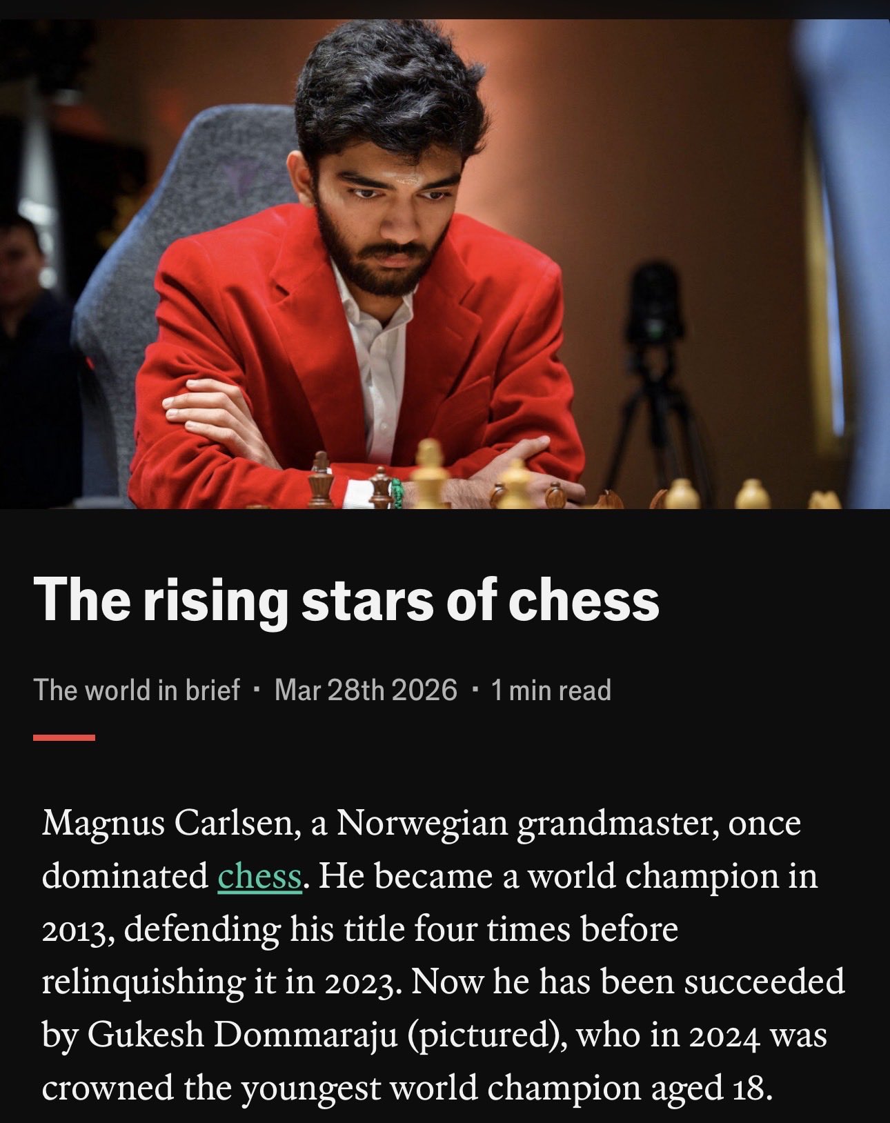 Listen to @TheEconomist’s podcast on chess to make sense of my statement.