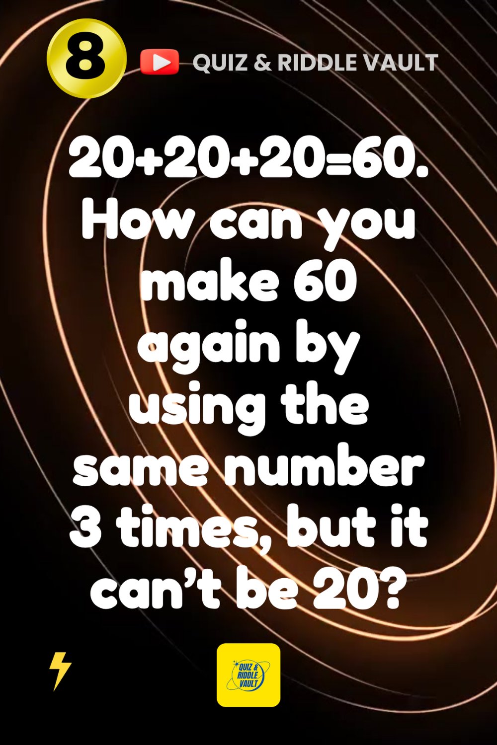 Quiz and Riddle Vault @QuizRiddleVault · Mar 19 🧩 TRICKY MATH PUZZLE! Make 60 using the same number 3 times — but it can’t be 20 👀 What’s the answer? Watch Nowyoutube.com/@QuizandRiddle…Wm Reply below 👇 #MathRiddle #BrainTeaser #Puzz3zH 5