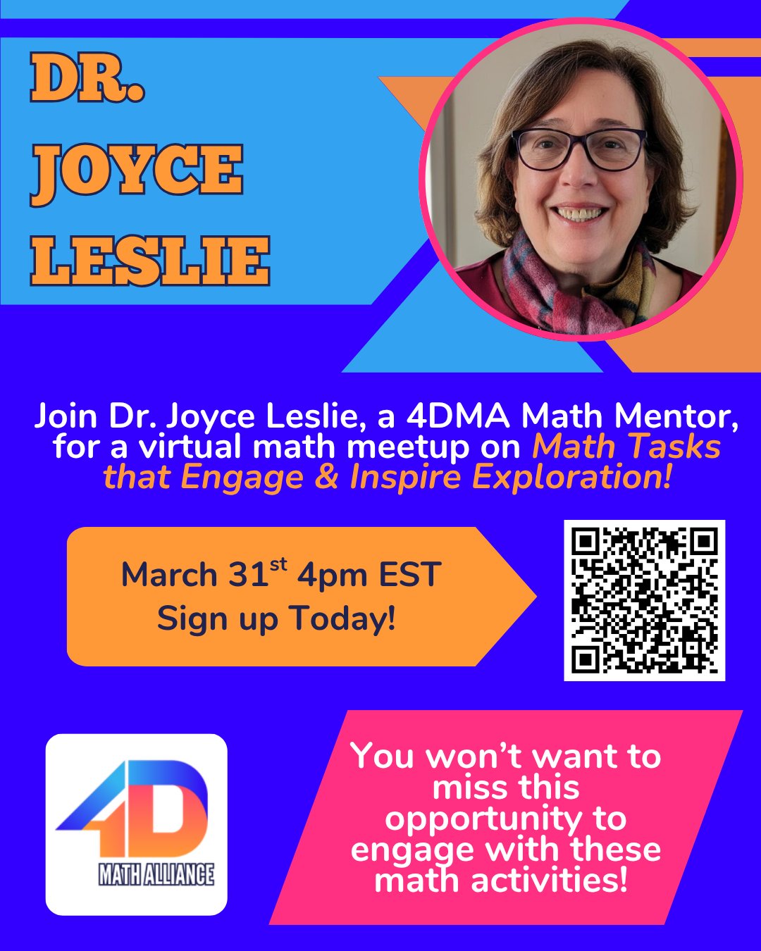 Find #MathTasks that engage & inspire #exploration at #4DMA's free virtual meetup with Dr. Leslie Tuesday, March 31st @ 4pm EST!