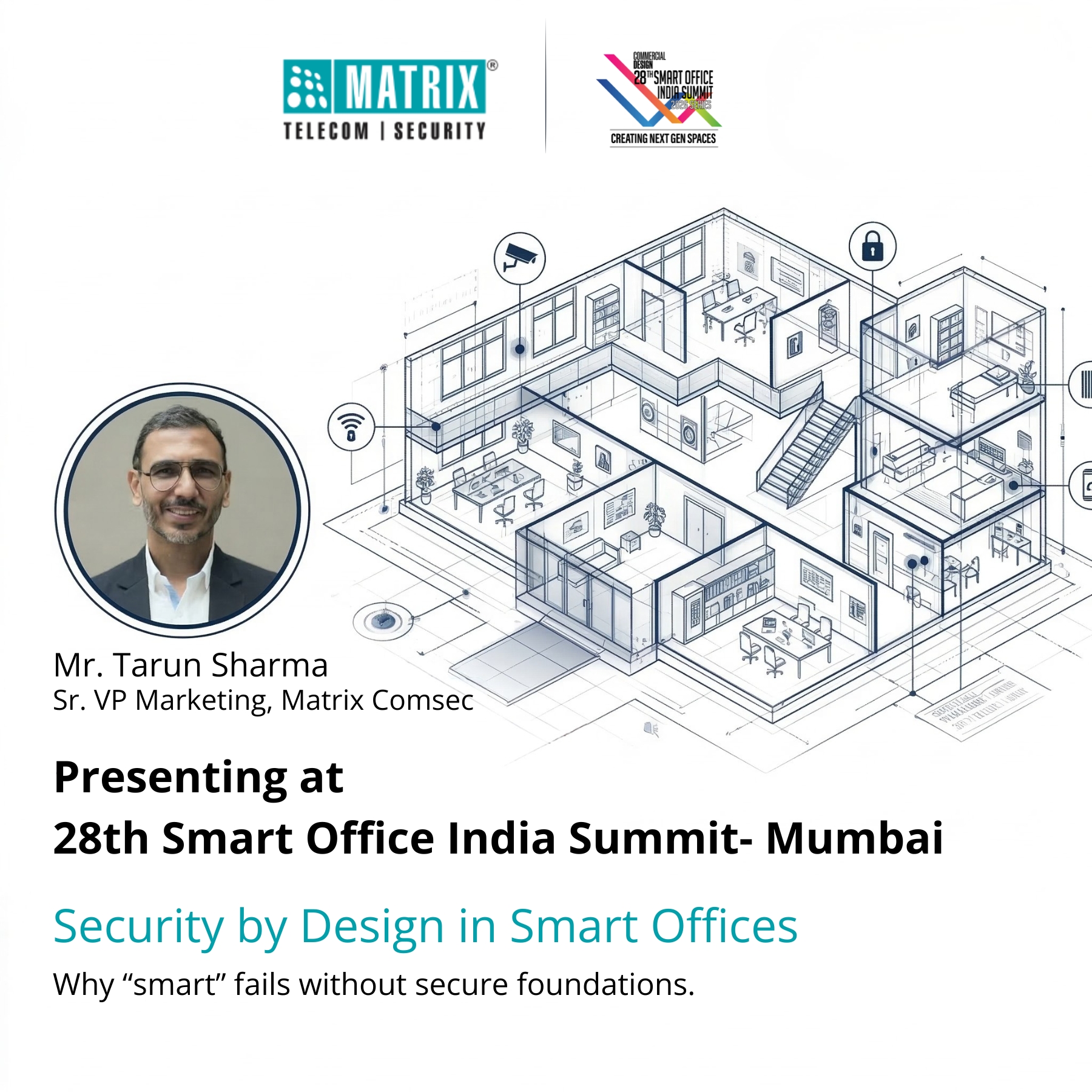 Mr. Tarun Sharma , Senior VP of Marketing at Matrix Comsec, emphasized this critical necessity in his session: Security by Design in Smart Offices.