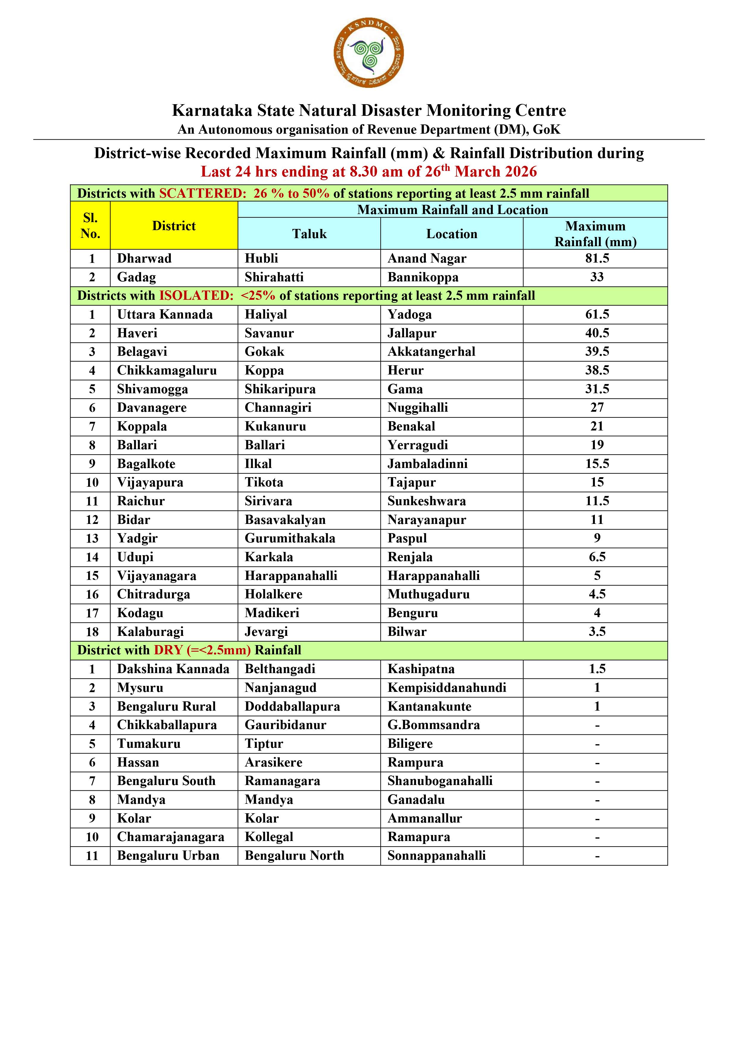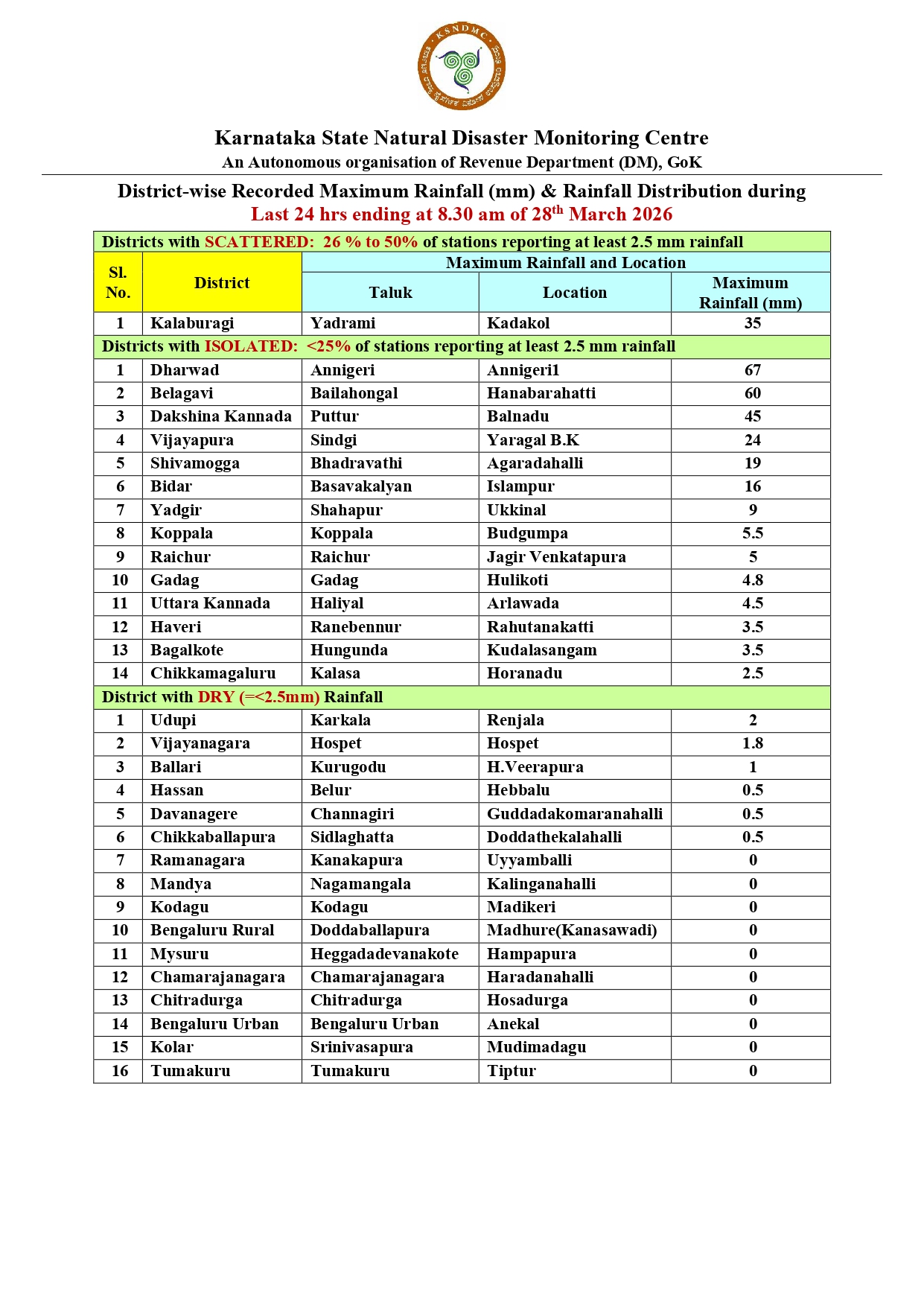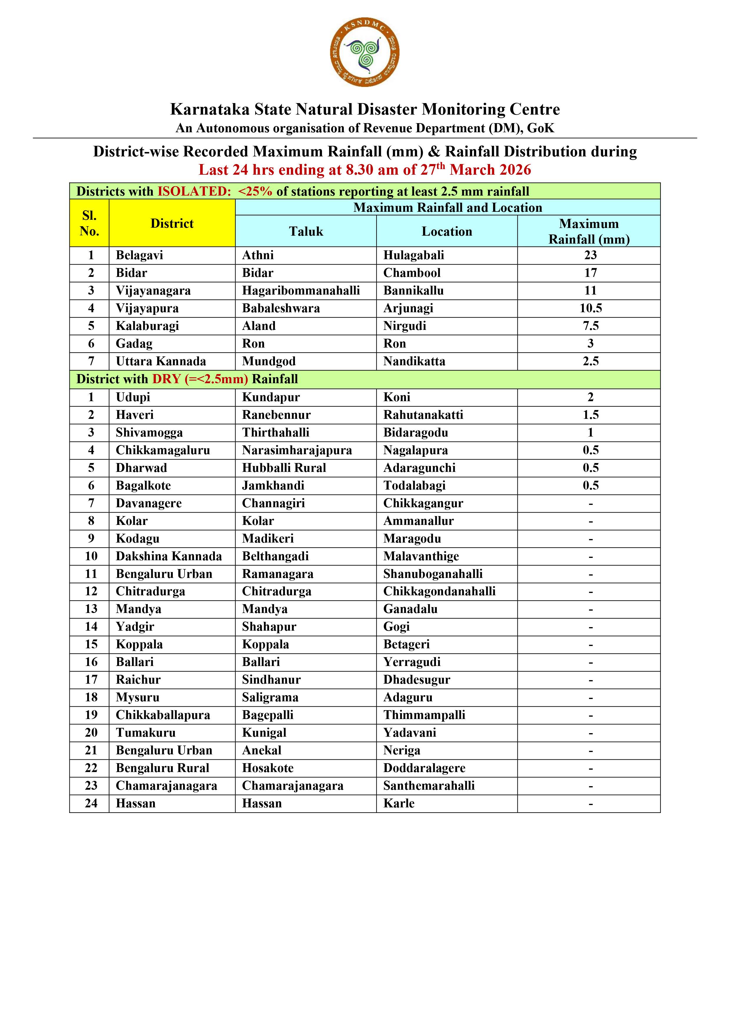 Karnataka State Natural Disaster Monitoring Centre @KarnatakaSNDMC ·