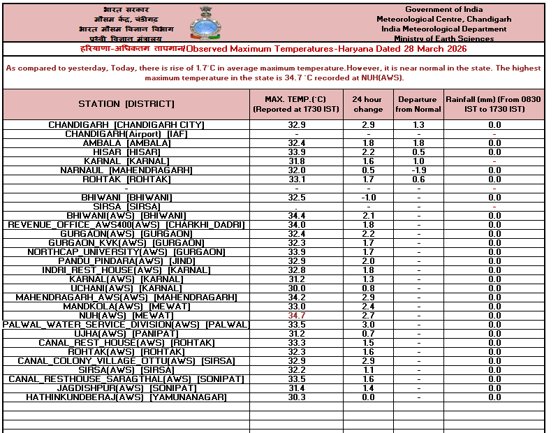 27.03.26 ರ 08.30 AM ನಿಂದ 28.03.26 ರ 08.30 AM ವರೆಗೆ ನಕ್ಷೆಗಳೊಂದಿಗೆ ಜಿಲ್ಲಾವಾರು ಸರಾಸರಿ ಕನಿಷ್ಠ, ಗರಿಷ್ಠ ಮತ್ತು ಏರಿಳಿತ ತಾಪಮಾನ(°C) ಕೋಷ್ಟಕ. District-wise Average #Minimum, #Maximum & Fluctuation #temperature (°C) table with maps from 08.30 AM of 27.03.26 to 08.30 AM of 28.03.26. #KSNDMC