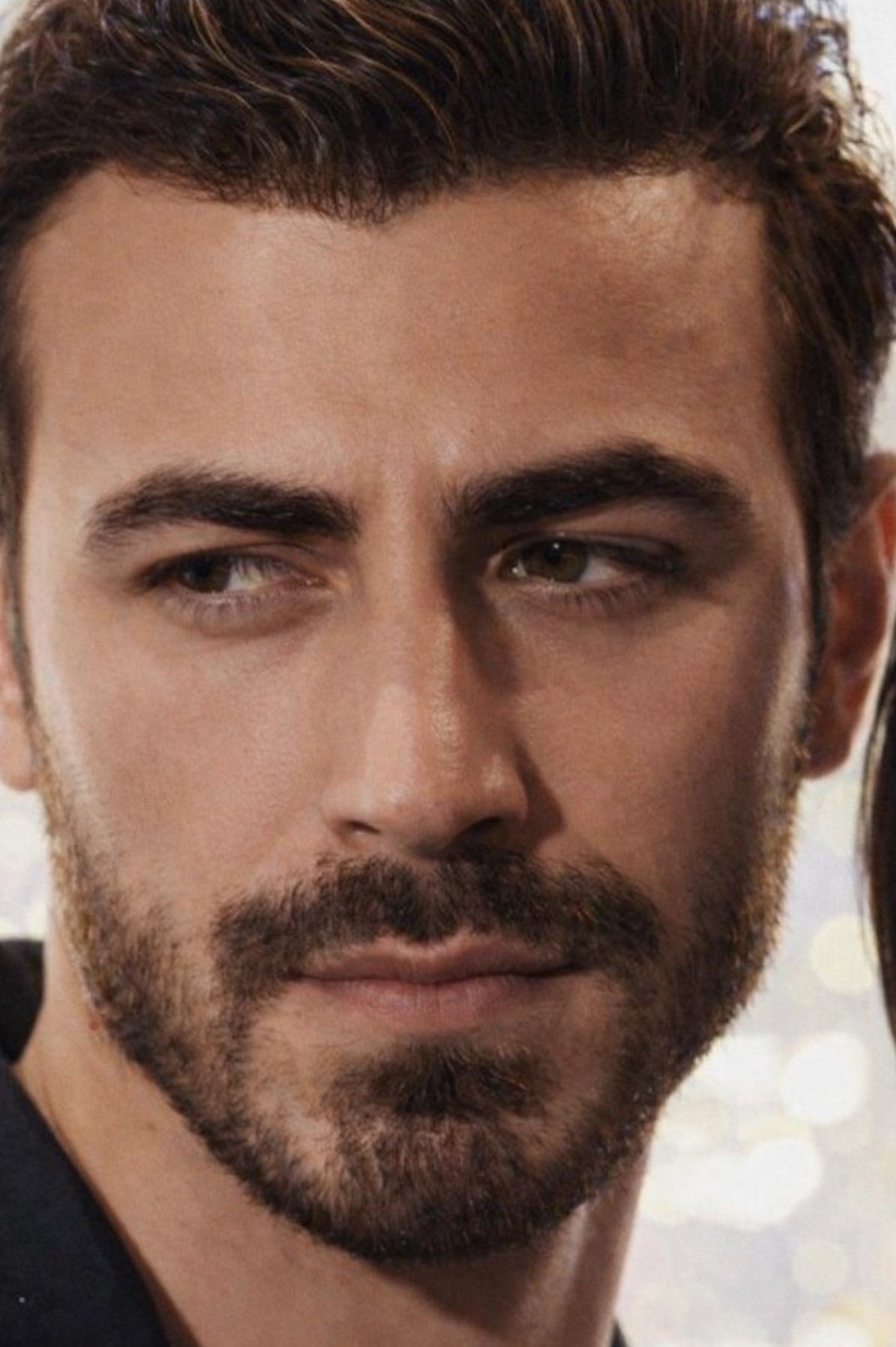 Yüz hatları güçlü, çekici, keskin ve orantılı; yakın çekimde ona özel bir karizma katıyor.