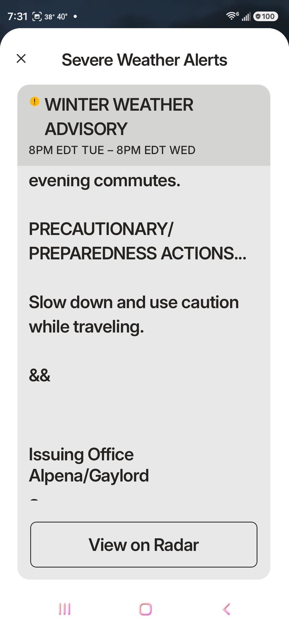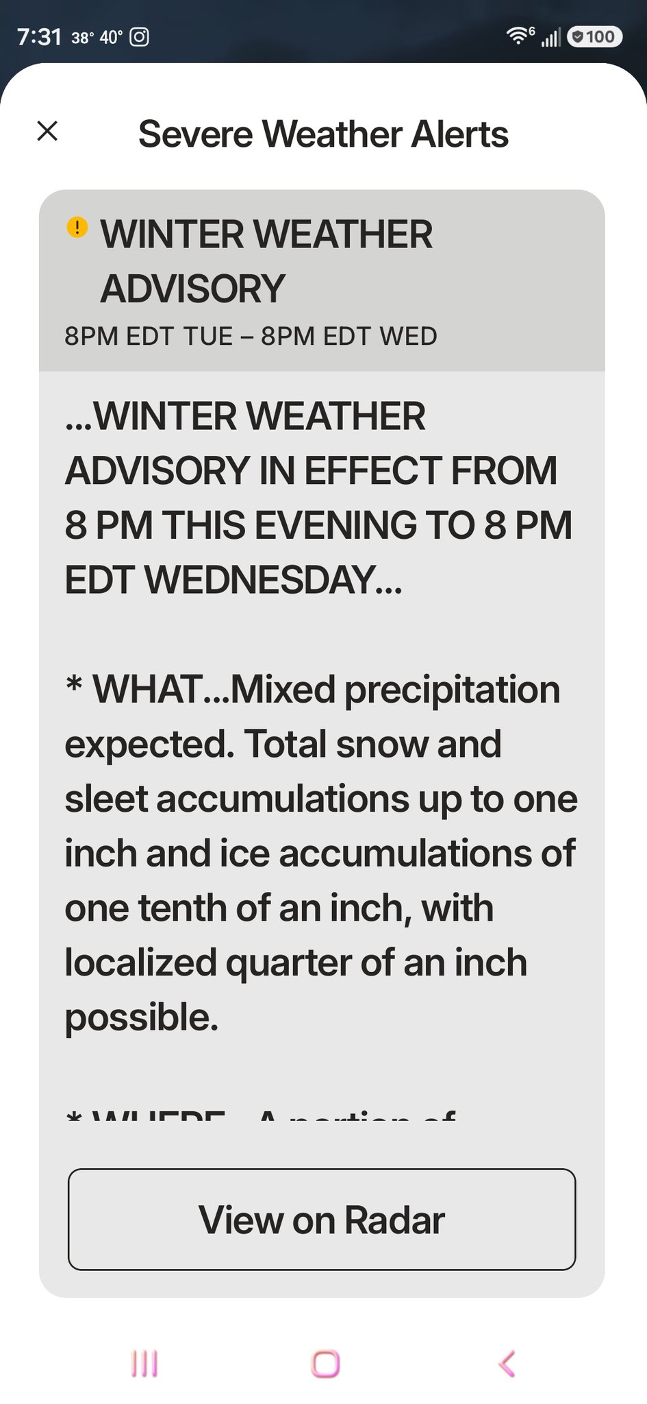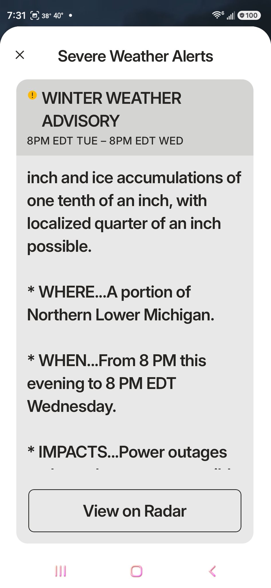 An additional two inches of snow and sleet, and up to a half an inch of ice are expected with wind gusts as high as 40 mph.