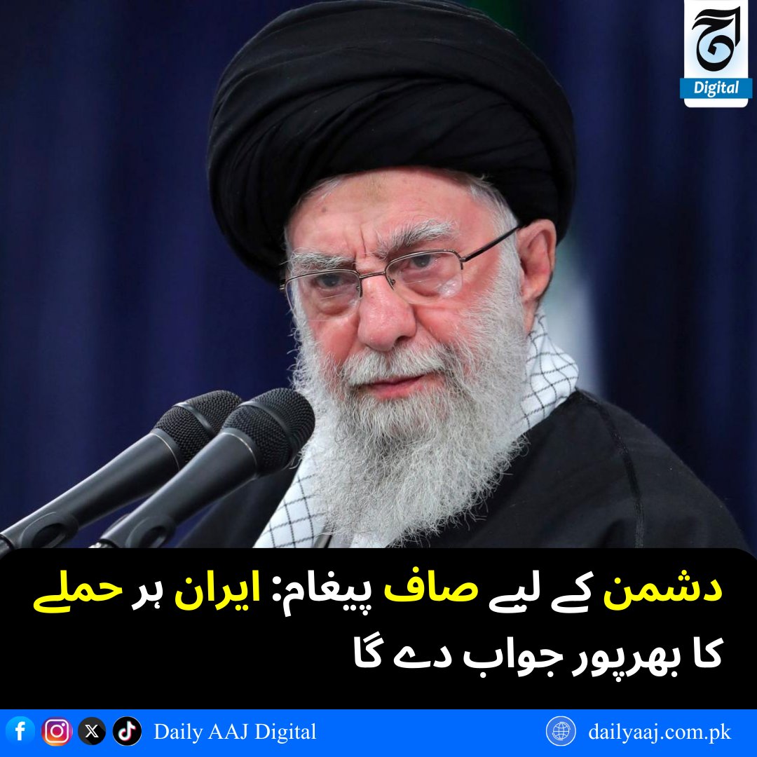 AAJ Digital @aajdigital · Feb 20 دشمن کے لیے صاف پیغام: ایران ہر حملے کا بھرپور جواب دے گا.. مزید پڑھیں:dailyaaj.com.pk/news/147615 #Iran #MilitaryWarning #DefenseStatement #MiddleEastTensions #DailyAAJDigital #news 61