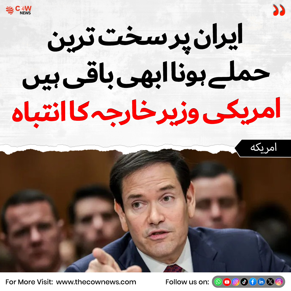 The COW News Urdu @TheCOWNewsUrdu · Mar 3 ایران پر سخت ترین حملے ہونا ابھی باقی ہیں: امریکی وزیر خارجہ کا انتباہ #USIran #MiddleEastTensions #MilitaryWarning #IranConflict #BreakingNews 25