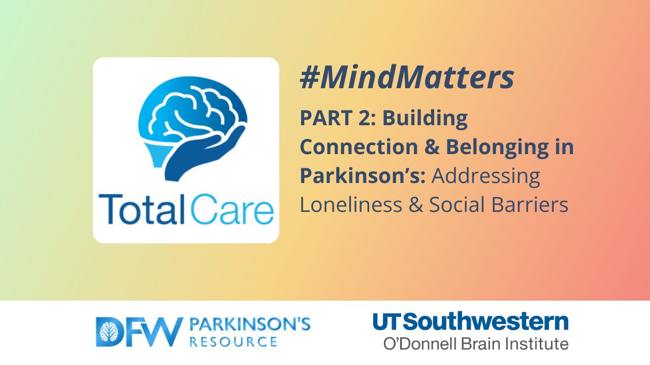📨 #TotalCarePD #MindMatters Series: Parkinson’s, Resilience & Practical Tools for Everyday Life. 🧠 Part 2: Building Connection and Belonging in Parkinson’s will be led by Dr. Bradley McDaniels.@dfwparkinsons,