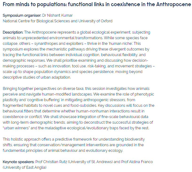 Now that I have your attention, why not submit an abstract for @ECBB2026 European Conference on Behavioural Biology (ECBB) organised at @AngliaRuskin, Cambridge from 1- 4 Sept? Organised by @Prof. @Claudia Wascher et al., we would love to have your abstract featured in the symposium, titled (check the image)