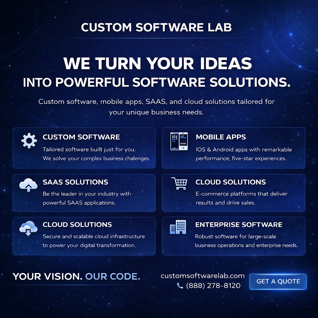 Transform your ideas into powerful software solutions with Custom Software Lab. From custom software to mobile apps, SaaS, and cloud solutions, we’ve got you covered.