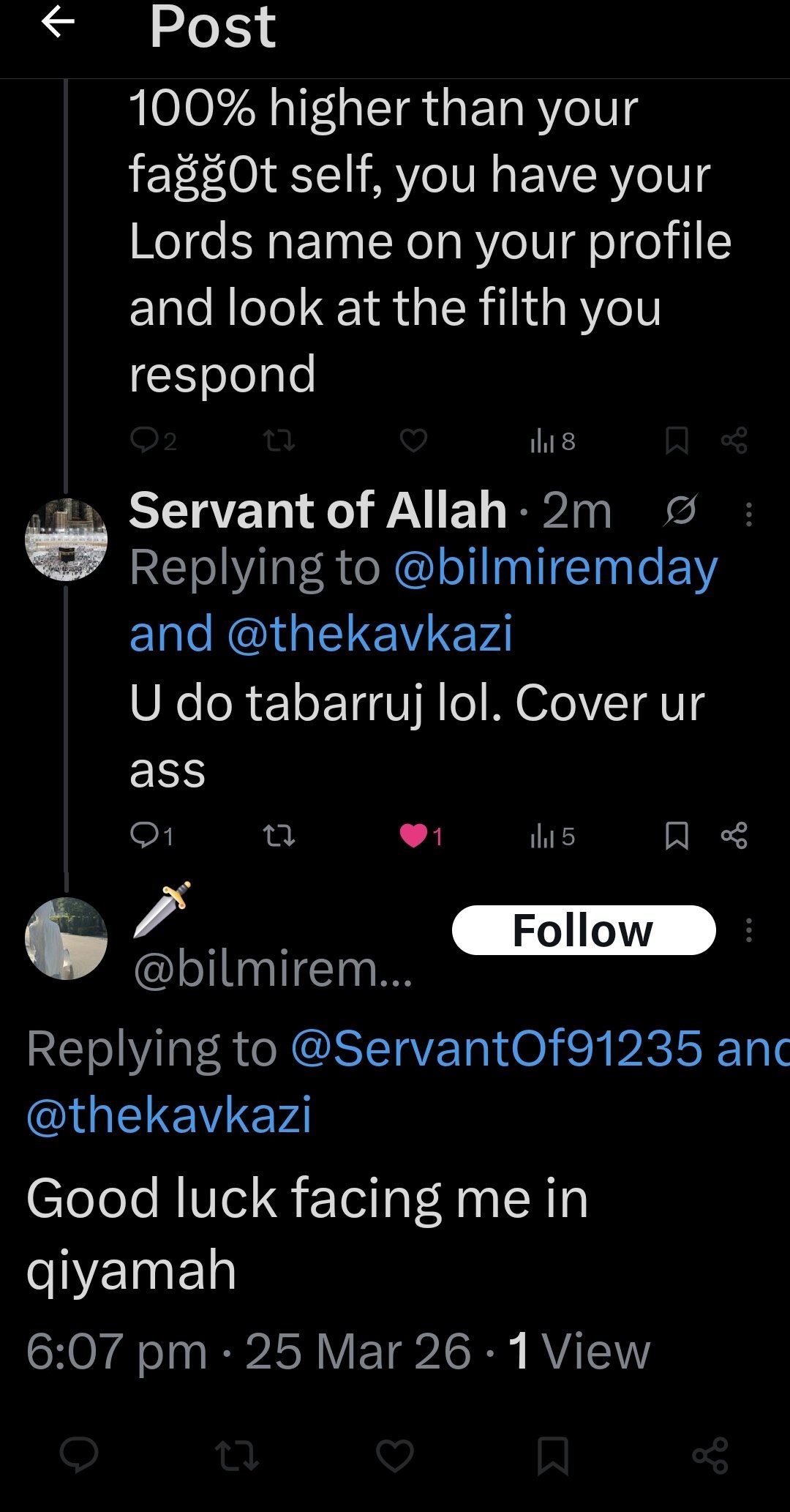 “If a man says to his brother, ‘O kāfir,’ then it returns to one of them. If the one accused is as he said, then it is true; otherwise it comes back upon the one who said it.”