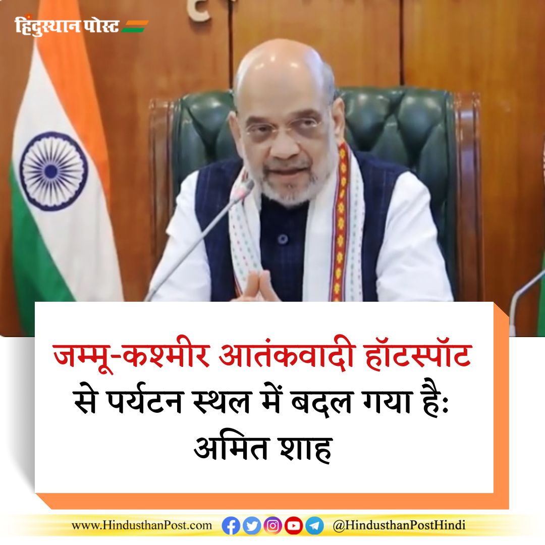 केंद्रीय गृह मंत्री अमित शाह ने शुक्रवार को कहा कि नरेन्द्र मोदी सरकार के कार्यकाल में जम्मू-कश्मीर शांति और विकास के नए युग का गवाह बन रहा है और यह क्षेत्र आतंकवादी हॉटस्पॉट से पर्यटन स्थल में बदल गया है।