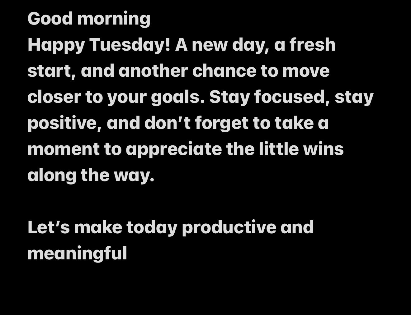 D . World Peace @DWorldPeace7 · 4d Today’s A New Day .. Positive Thoughts !! Good morning to all of my Twitter-X family members, to all of my friends, & to all of the viewers .. On this Tuesday morning ! #EarlyMorningRise #MorningRoutine #MorningPost #BlessedToBeAlive #TuesdayMorning #TuesdayMorning #PositiveMindset #PositiveEnergy #ChicagoStopTheViolence 8