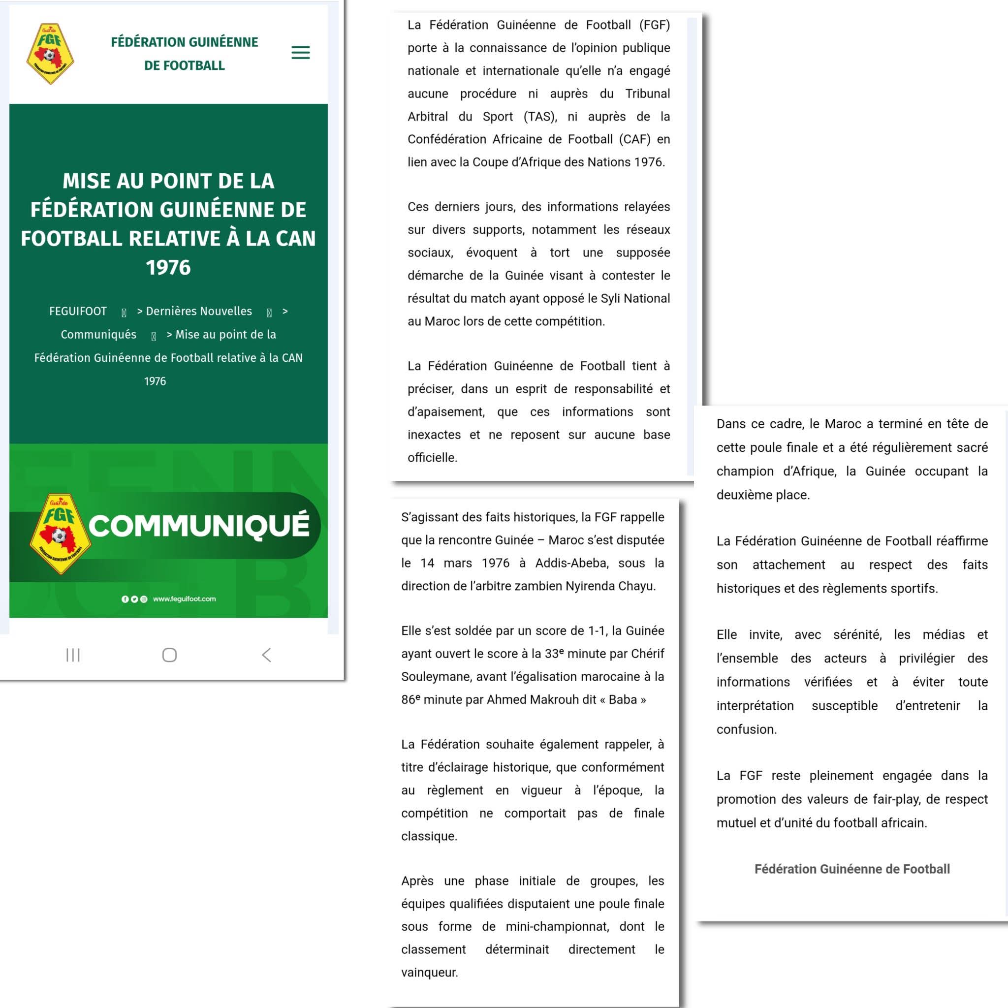 الاتحاد الغيني لكرة القدم ينفي الشائعات التي كان مصدرها الاعلام الجزائري و التي نقلتها منصات اعلامية سينغالية و مصرية