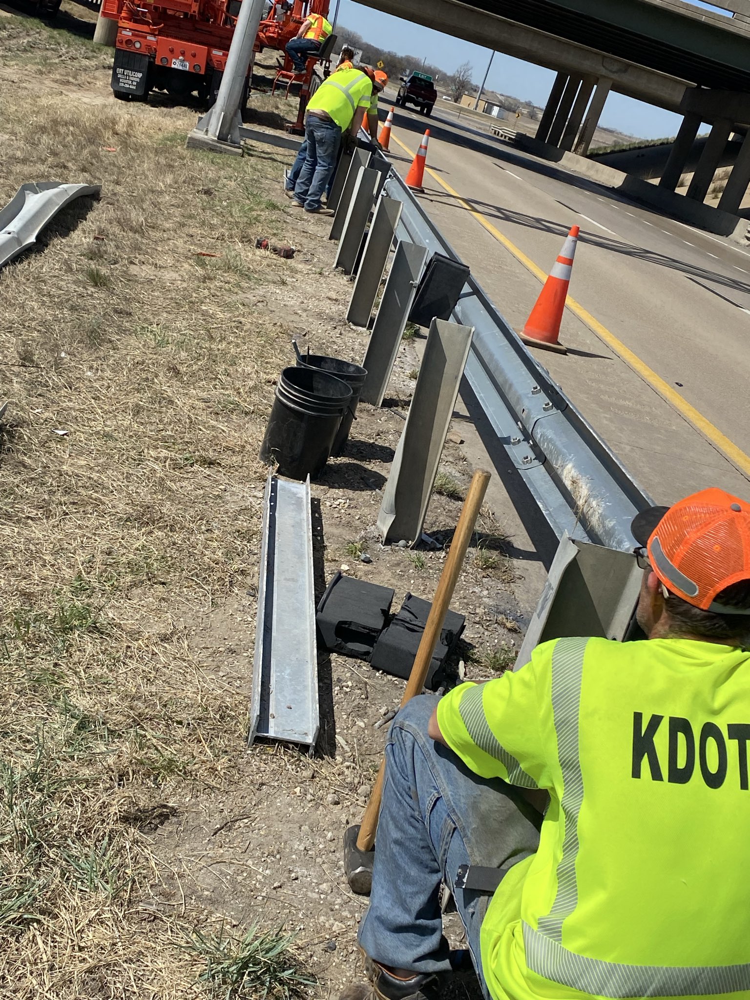 ALERT: Highway workers are repairing guardrail along the passing lane on WB I-70 under I-135 at Salina.