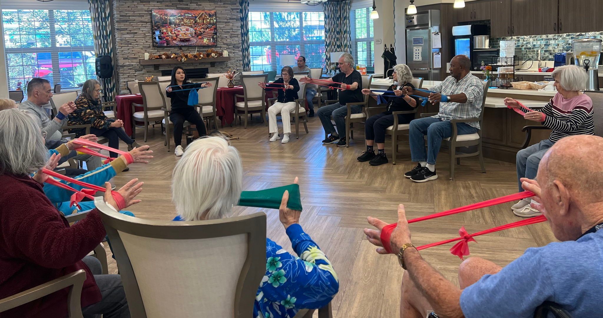 🧘✨ Smiles, stretches, and so much joy! Leslie’s seated yoga brings energy, calm, and connection to every senior in the room. A true celebration of movement and mindful living. 🌿