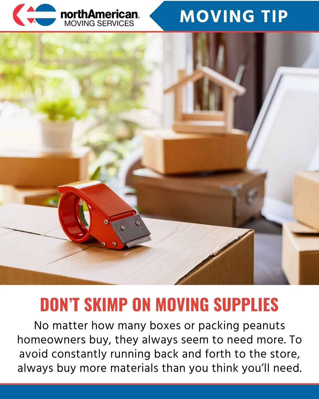 Trying to economize on moving supplies is like cutting corners. It rarely works out in the end. Make sure you have enough to protect your belongings by buying a little extra, just in case. Moving requires a lot of material, so it’s almost certain to come in handy. #movingtip