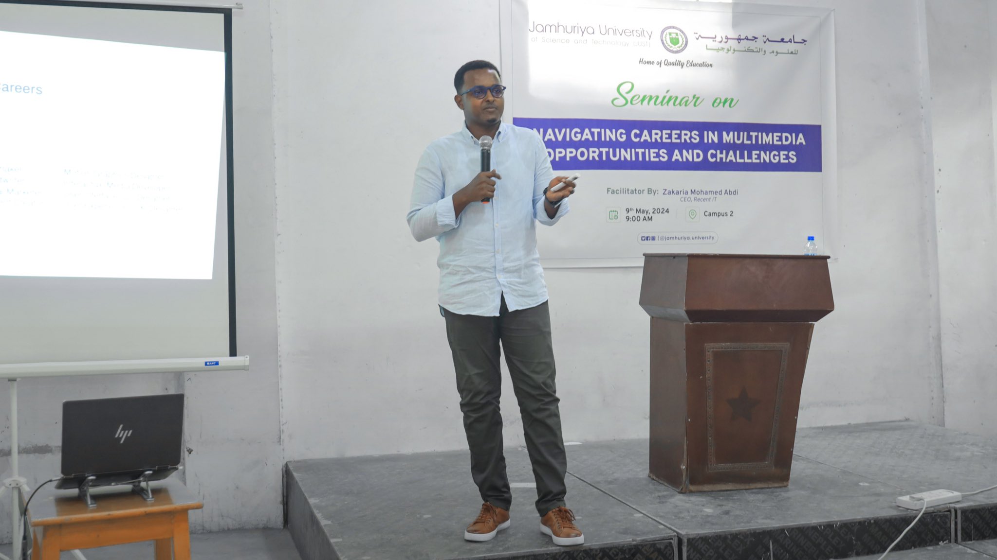 Zaky Moha 🇸🇴 @ZakyMoha10 · May 9, 2024 I am delighted to have presented the seminar titled “Seminar on Navigating Careers in Multimedia: Opportunities and Challenges” to the students of @JamhuriyaUniv particularly those in the Multimedia department. #Zaky #seminar #multimedi #cit #JUST 1 2 126