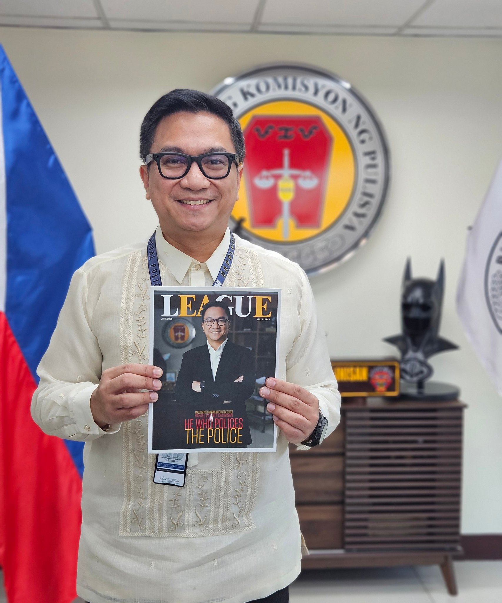 Isang malaking karangalan po na ma-feature sa cover ng magazine po ninyo. Maraming salamat po, League Magazine. Tuloy lang po ang serbisyo namin dito sa NAPOLCOM bilang tagapag-taguyod ng morale and welfare ng kapulisan, at bilang "pulis ng pulis" para sa taong-bayan.