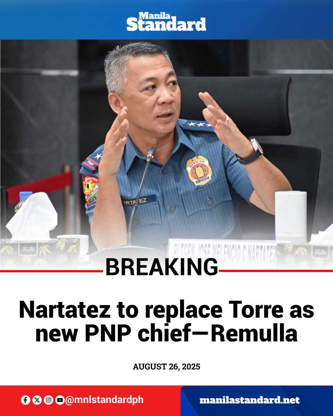 BREAKING | Former Ilocos Norte provincial police director Jose Melencio Nartatez, Jr. is set to take over as the new Philippine National Police (PNP) chief, replacing Gen. Nicolas Torre III, who was unceremoniously relieved after just nearly three months in office.