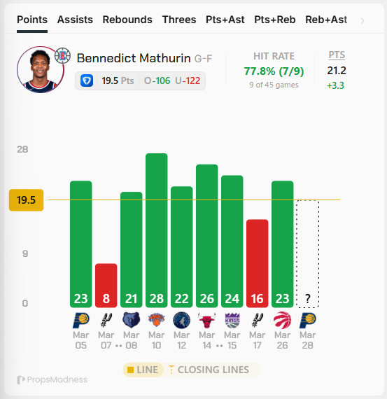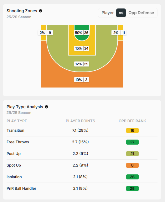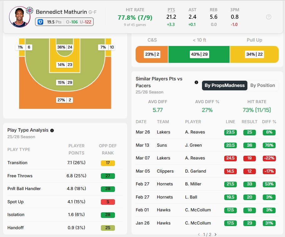 *Καλό ματσάρισμα για το Playstyle του Mathurin και κακή άμυνα απέναντι σε SF αυτή των Pacers.