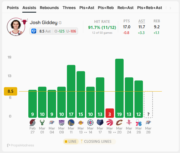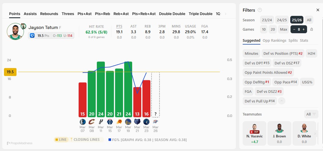 *L9 Games: 21.2π. AVG, 7/9 Over 19.5π.