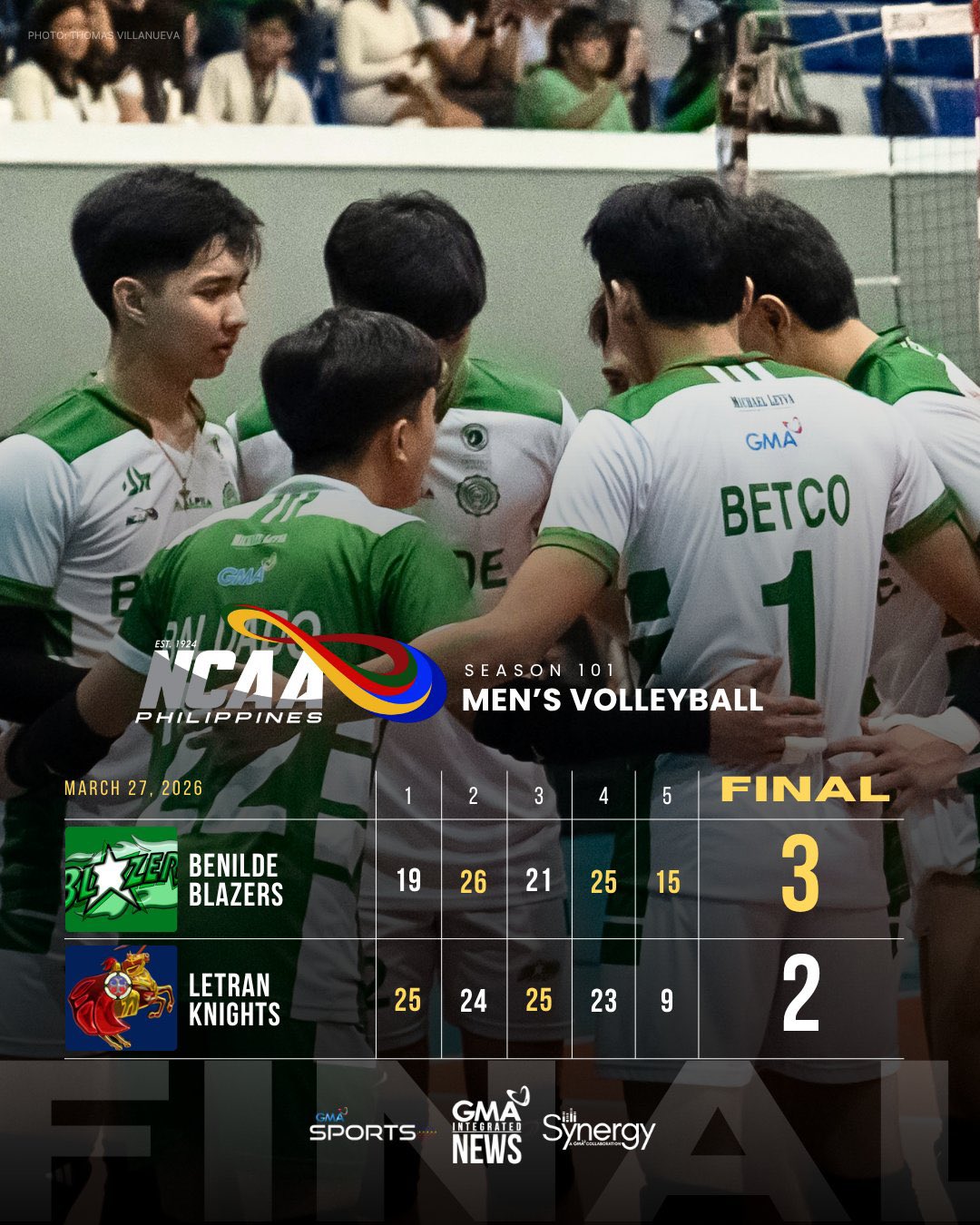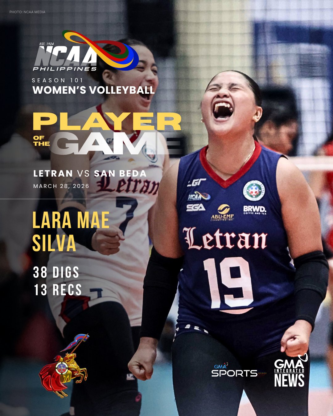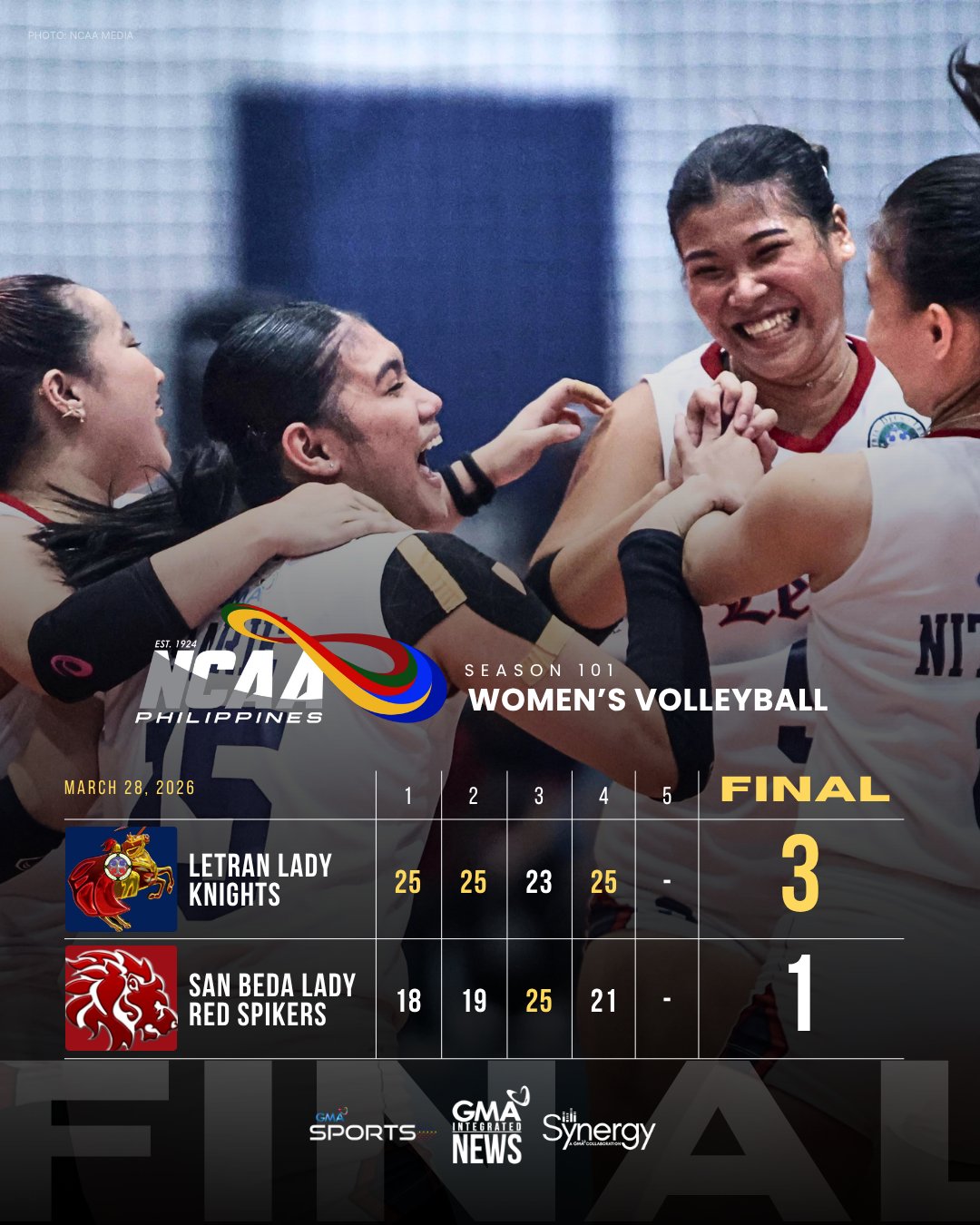 Meanwhile, in the #NCAASeason101, Judiel and the rest of the Letran Lady Knights outlasted the San Beda Lady Red Spikers in 4 sets.