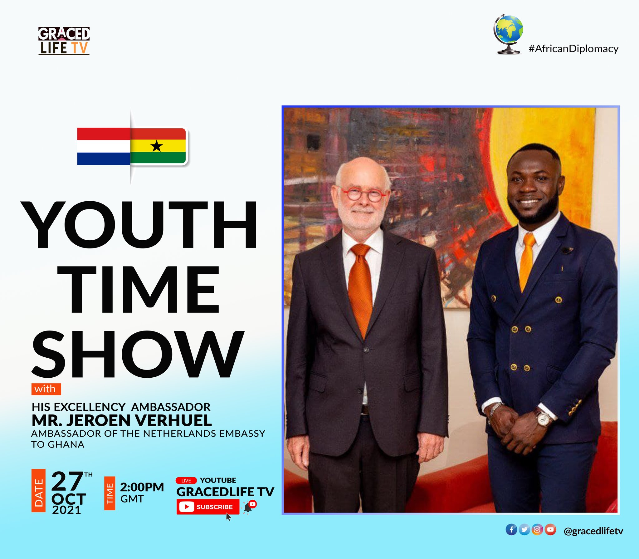 Join us on Wednesday, 27th of October 2021 at 2:00 pm, as we delve deeper into the Netherlands-Ghana's bilateral relations.