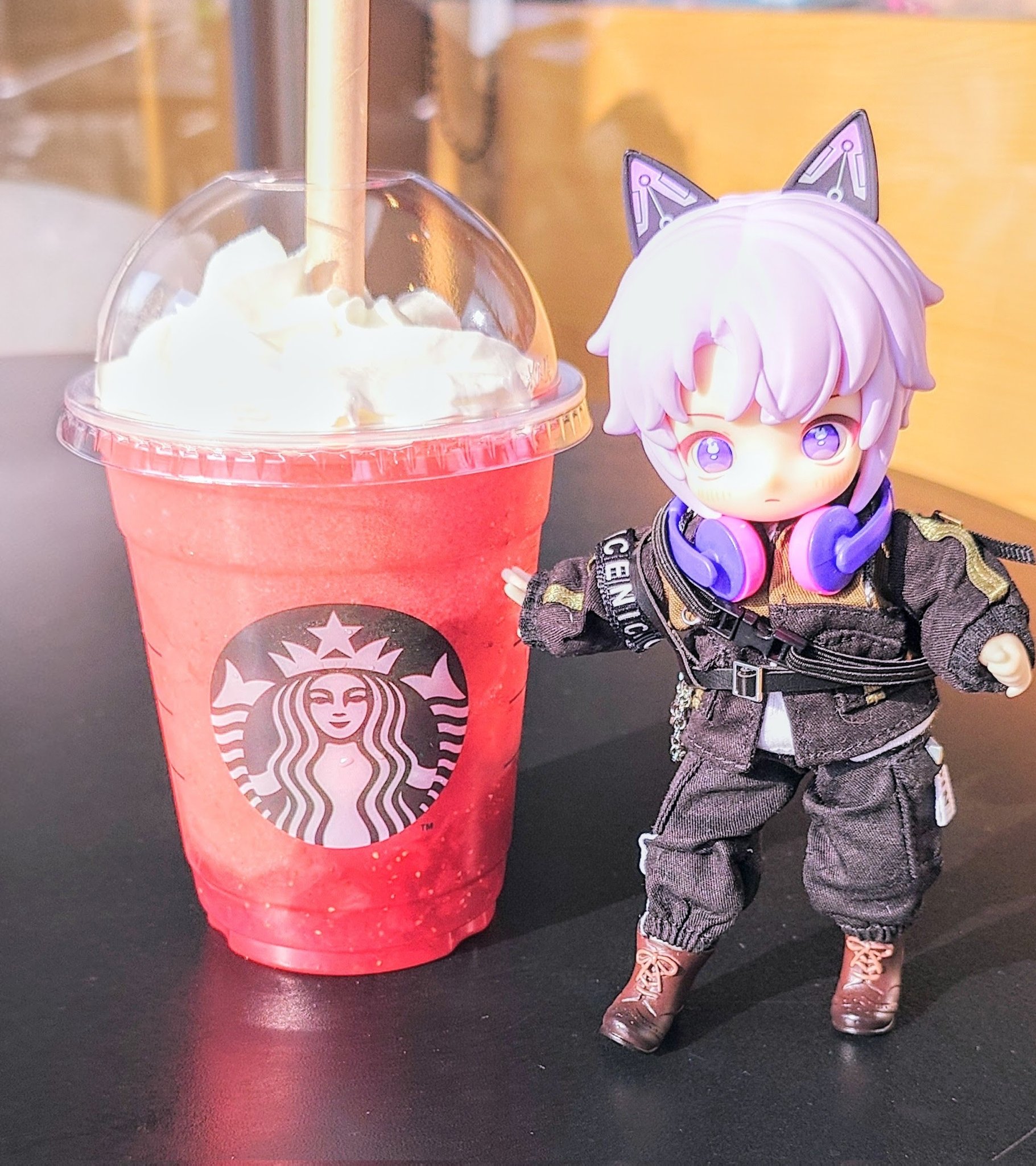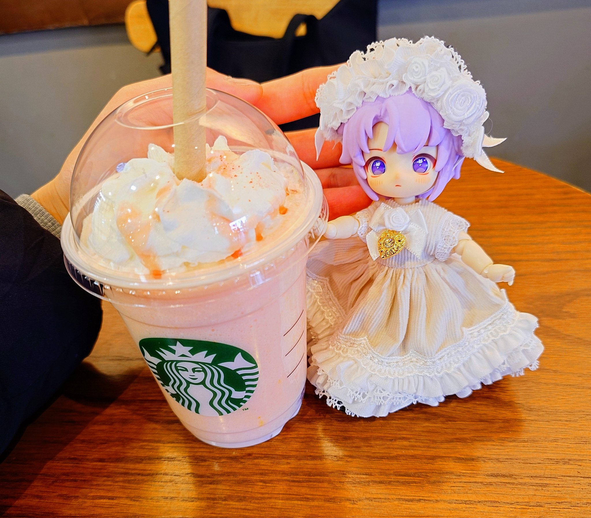 紫音 @sion_kannagi · Feb 19, 2025 最近仕事が詰まってお疲れモードだったので、メンタルリセットに突発で有休を召喚っ!! 以前ドールショップでお迎えした恋鞠堂さん(@ koimarido)の大変かわちぃお洋服に身を包んだ星泉くんと一緒に新作フラペを堪能してきました♪ #NAGI #NAGI3 #NAGI留学シーズン #ブラインドドール #次元界TOY 1 6 837