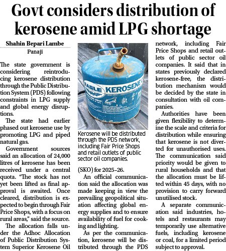 The Navhind Times @Navhind_Times · 1d Govt considers distribution of kerosene amid LPG shortage... Read more in The Navhind Times today! Story By: @Shahinlambe86 #kerosene #lpgcylinder #NavhindTimes 70