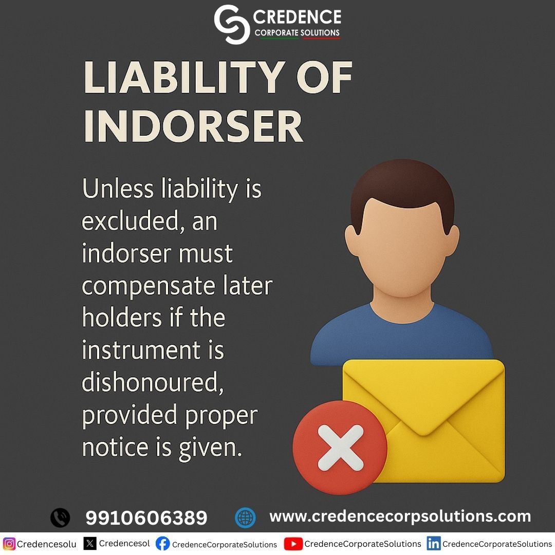 An indorser is liable to subsequent holders if the instrument is dishonoured, unless liability is excluded. #LiabilityOfIndorser #NegotiableInstruments #LegalClarity #LawInsights