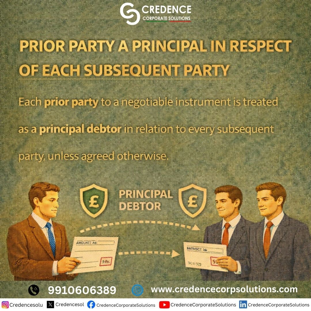 Each prior party is a principal debtor in respect of every subsequent party to the instrument. #PriorParty #NegotiableInstruments #PrincipalLiability #LegalClarity