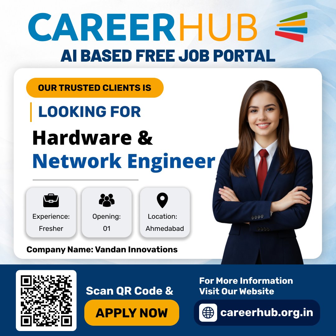 #HardwareEngineer #NetworkEngineer #ITJobs #AhmedabadJobs #FresherJobs #HiringNow #CareerHub