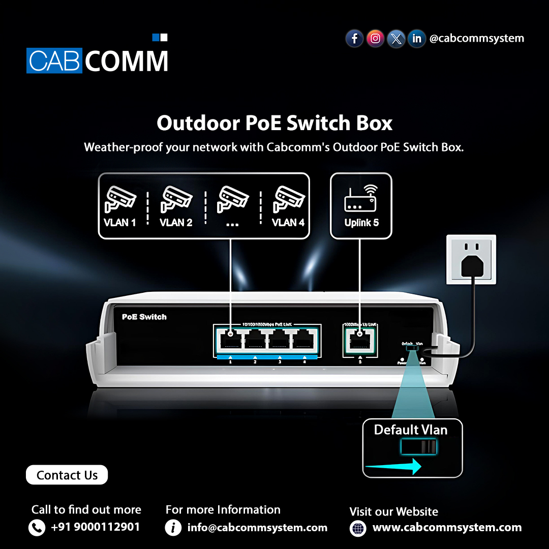 #OutdoorPoESwitchBox #Cabcomm #NetworkingSolutions #PoESwitch #OutdoorNetwork #WeatherResistant