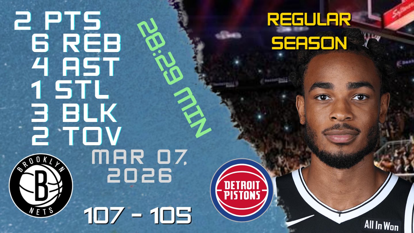 NBA Players Highlights @NBAPlayersHigh · Mar 8 Nic Claxton Stats For REGULAR SEASON Game vs PISTONS 07-03-2026 youtu.be/5ty0sWW0egg #NicClaxton #Nic #Claxton #nba #nbahighlights #basketball #brooklyn #nets #nets #brooklynnets 46
