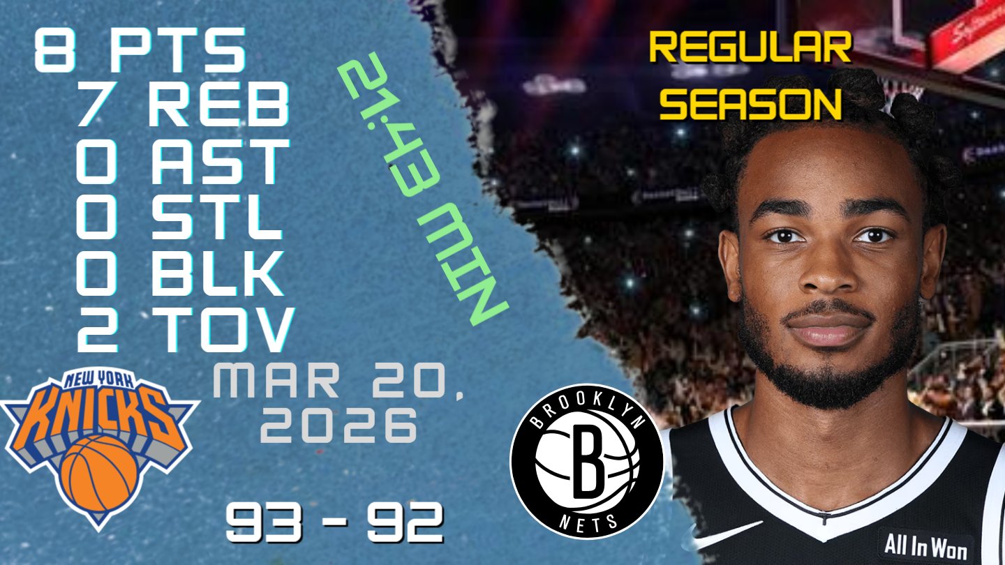 NBA Players Highlights @NBAPlayersHigh · Mar 21 Nic Claxton Stats For REGULAR SEASON Game vs KNICKS 20-03-2026 youtu.be/G5ra35F1nP4 #NicClaxton #Nic #Claxton #nba #nbahighlights #basketball #brooklyn #nets #nets #brooklynnets 32