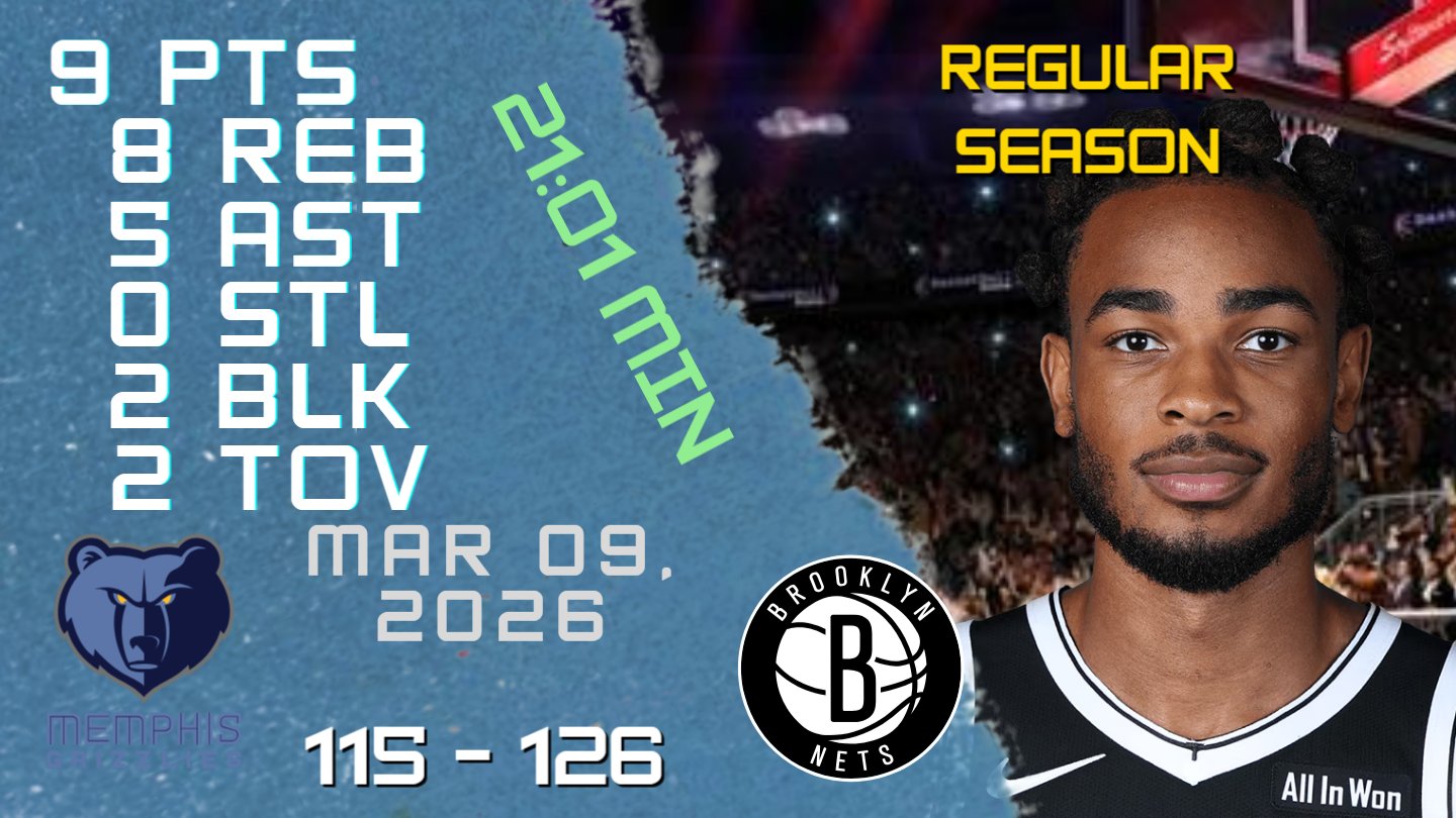 NBA Players Highlights @NBAPlayersHigh · Mar 10 Nic Claxton Stats For REGULAR SEASON Game vs GRIZZLIES 09-03-2026 youtu.be/lp624LpuWGc #NicClaxton #Nic #Claxton #nba #nbahighlights #basketball #brooklyn #nets #nets #brooklynnets 64