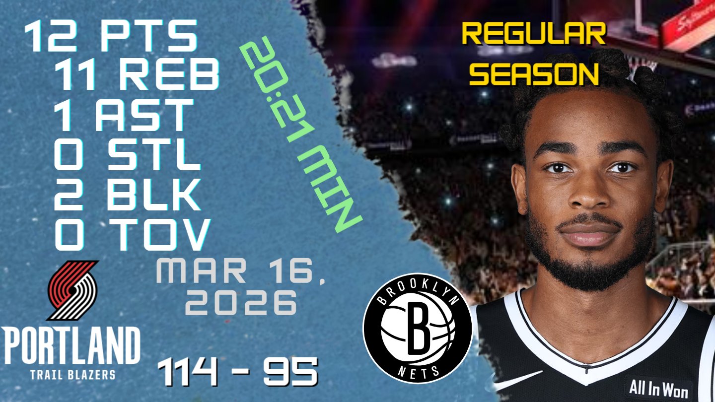NBA Players Highlights @NBAPlayersHigh · Mar 17 Nic Claxton Stats For REGULAR SEASON Game vs BLAZERS 16-03-2026 youtu.be/LYGAGVOm1TI #NicClaxton #Nic #Claxton #nba #nbahighlights #basketball #brooklyn #nets #nets #brooklynnets 25
