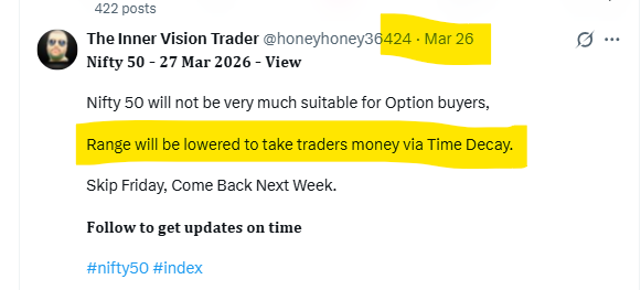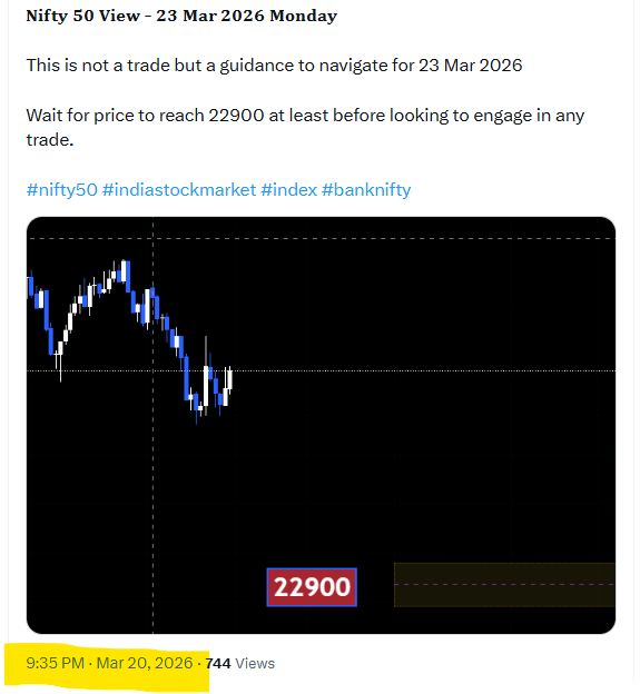 𝐍𝐢𝐟𝐭𝐲 𝟓𝟎 - 𝐖𝐞𝐞𝐤𝐥𝐲 𝐑𝐞𝐯𝐢𝐞𝐰 - 𝟐𝟑-𝟐𝟖 𝐌𝐚𝐫 𝟐𝟎𝟐𝟔 If you connect all these 3 post together from 23-28 Mar 2026, You can see most of the things happened in this week anticipated befor#nifty https://t.co/SNPA8gv50r