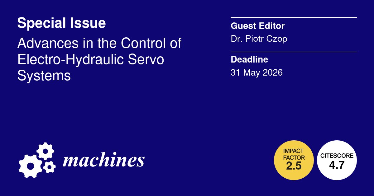 📣 #CallforPapers to the #SpecialIssue: Advances in the Control of Electro-Hydraulic Servo Systems �mdpi.com/journal/machin…Mz 📅 Submission date: 31 May 2026 Guest Editor: Dr. Piotr Czop #nonlinearcontrol #hydrauli@c @MDPIEngineerin@g @MDPIOpenAcceuUe