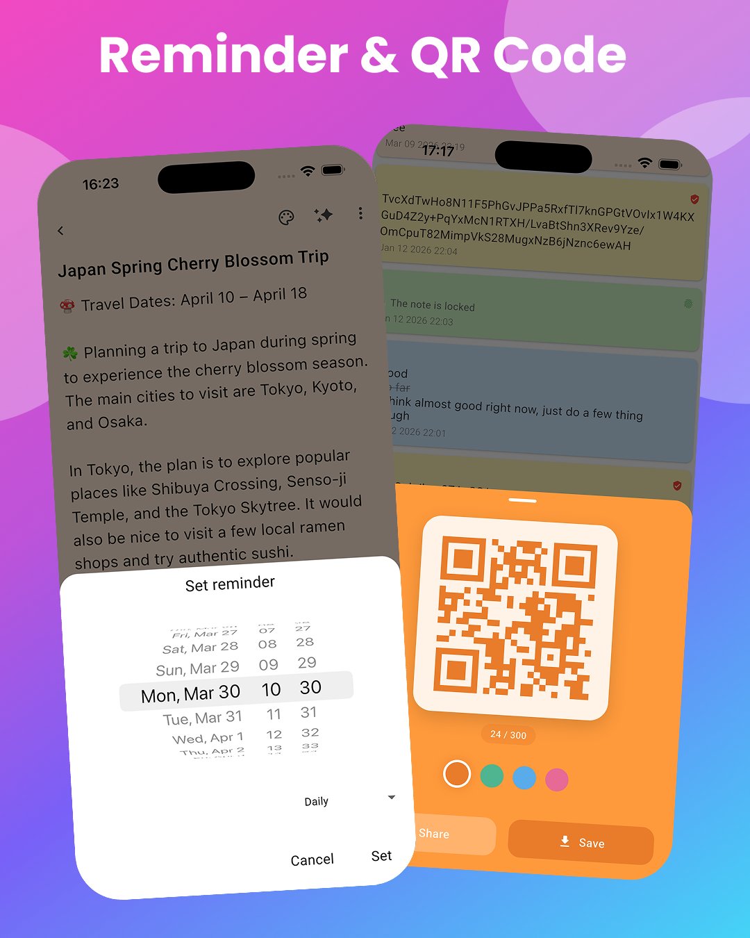 • Share notes instantly with QR codes