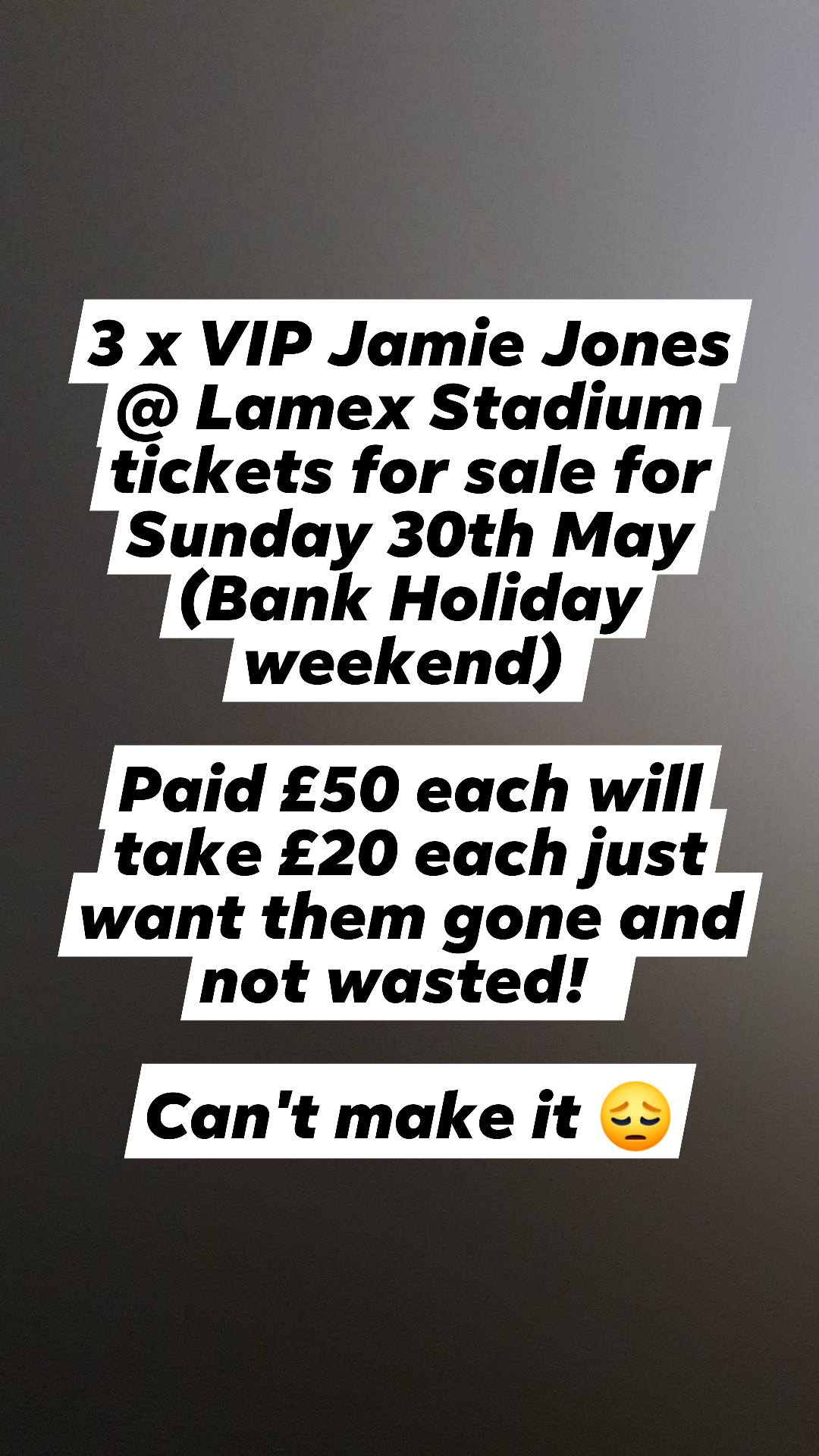 Paid £50 each will take £20 each just want them gone and not wasted! #JamieJones#LamexStadium#NuFuture