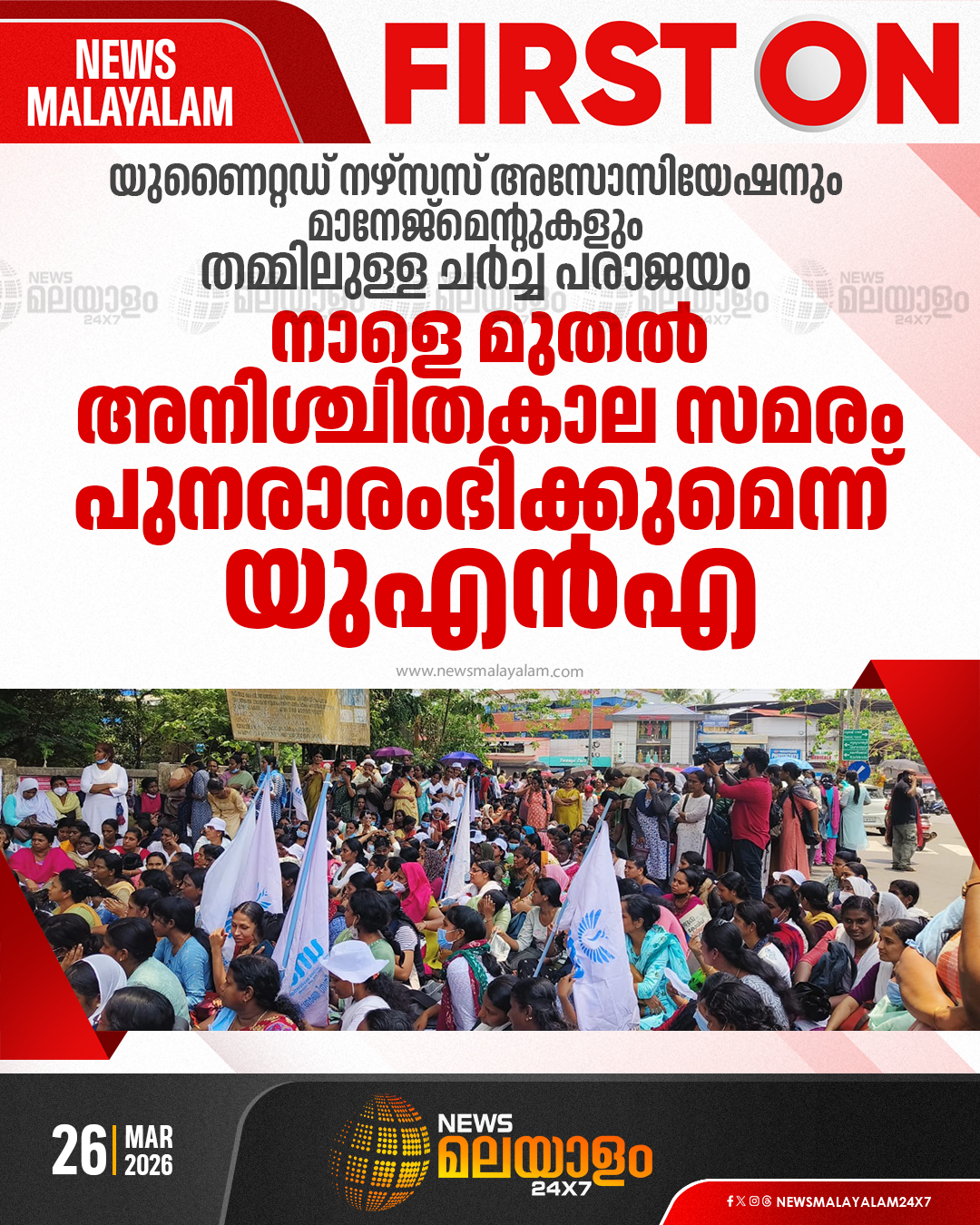 ശമ്പള പ്രശ്നത്തിൽ ധാരണയില്ല; ചർച്ചയ്ക്ക് തയ്യാറാകാത്ത മാനേജ്മെൻ്റുകൾക്കെതിരെ യു.എൻ.എ പ്രതിഷേധം ശക്തമാക്കുന്നു