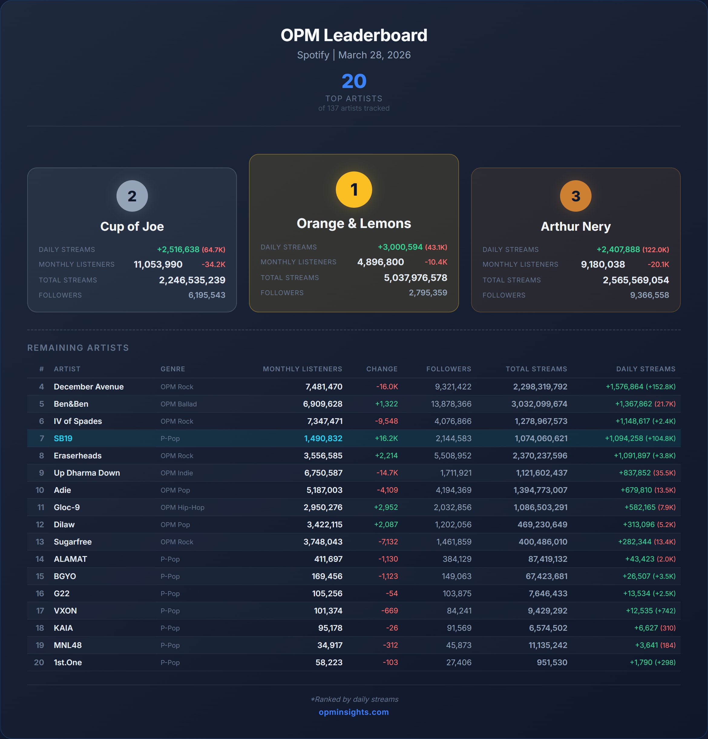 Every top OPM artist on Spotify PH: